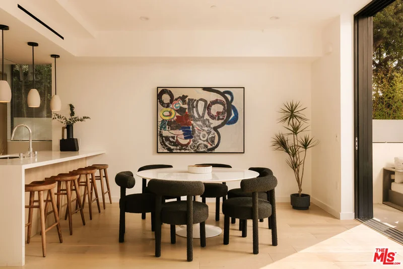 Atria is a collection of sixteen modern residences tucked into the hills of Silver Lake, offering a thoughtfully curated take on contemporary California living. Clean architectural lines meet warm, livable interiors, creating homes that feel both elevated and effortlessly comfortable. Residence 106 is designed for seamless indoor-outdoor living, anchored by a spacious great room that opens to a private deck through expansive 10-foot sliding glass doors. With double height ceilings, natural light pours in, highlighting the white oak finishes that soften the contemporary aesthetic. The mezzanine provides an ideal space for a home office or gym. A chef's kitchen features a full suite of appliances seamlessly integrated into paneled cabinetry, complemented by refined quartz countertops and a grand peninsula. The primary suite features ample closet space and a spa-inspired bathroom with dual vanities and a large walk-in shower. A secondary en-suite bedroom, laundry closet, powder room, and additional storage complete the residence. Each home also includes two dedicated parking spaces and a private storage unit. Perfectly positioned in the heart of Silver Lake, Atria offers easy access to some of Los Angeles' most sought-after lifestyle destinations. Moments from Griffith Park and the Silver Lake Reservoir, residents enjoy a rare blend of outdoor recreation and urban convenience. The highly walkable neighborhood is filled with beloved cafes, restaurants, and boutiques, with Sunset Junction, Atwater Village, Glendale, Downtown Los Angeles, and Hollywood just a short drive away.