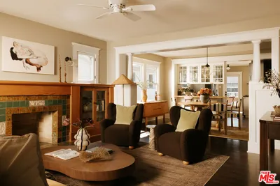 A thoughtfully restored Craftsman by Art Craft Homes in a great pocket of West Adams. A home that exemplifies the perfect balance of bright & fresh contemporary feel with historic preservation. The verdant front yard and wide porch are set behind an idyllic white picket fence. Inside, the open layout runs from the living room, which features a Batchelder-esque tile fireplace and built-ins, through to the dining area with decorative crown moldings, and into the kitchen. The kitchen includes glass-front cabinetry, wood countertops, a farmhouse sink, and a paneled dishwasher. The front bedroom, originally called a parlor room, makes for a great home office. The primary, with its vaulted ceiling, has a generous scale. Doors from both the kitchen and primary bedroom open to a spacious backyard with a deck, grassy area, and a double-bay garage with fantastic ADU potential. Be a part of the burgeoning West Adams neighborhood, and close to great new spots like Maydan Market, Highly Likely, and The Little Room.