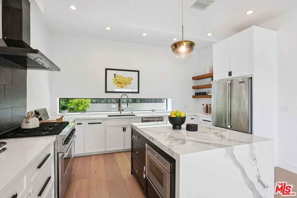 Perched above the neighborhood with sweeping panoramic views and a rooftop deck that will make your friends genuinely jealous, this stunning modern masterpiece delivers the full LA dream right in the heart of one of the city's most beloved and walkable neighborhoods.Step inside and the soaring open-concept great room immediately pulls you in with wide-plank white oak floors, floor-to-ceiling sliding glass walls that open to a private deck, and designer lighting that manages to be both dramatic and warm. The chef's kitchen is a genuine showstopper Viking appliances, a dramatic waterfall-edge marble island with a contrasting black base and gold hardware, a sleek pro range with a statement black tile backsplash, and a garden window that makes doing the dishes feel like a meditation.The staircase alone deserves its own Instagram account black steel frame, floating wood treads, glass railings sculpture you actually get to live with every day.Here's what makes this floor plan genuinely special: there is a primary suite is on the main level. The main bedroom has a spa-caliber en suite bath featuring a double vanity with a warm wood-framed mirror, open shelving, and a rainfall shower wrapped in gorgeous marble tile. Bright, generous secondary bedrooms with views that remind you exactly why you chose this zip code and flexible spaces that work perfectly as a home office, gym, or creative studio.And then there's the rooftop. Panoramic views of the hills, the treetops, and the LA skyline stretch out in every direction your very own outdoor living room above it all, ready for sunset happiness every night. Oh, and the 2-car garage? In Los Feliz? That alone is worth the price of admission.Here's the best part about location: you can literally walk to Trader Joe's. No circling the parking lot. No parking lot rage. Just grab your reusable bag and go. The neighborhood's legendary dining, coffee, and culture are right at your doorstep too, with Griffith Park and the Observatory just minutes away.Los Feliz doesn't come like this very often. Disclosures and inspections are all done and available!