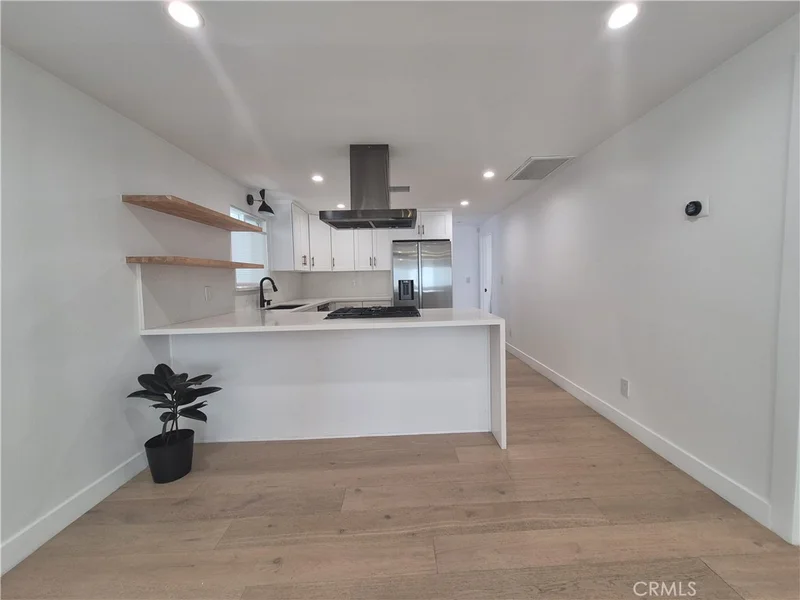 Newly remodeled modern front home in the heart of Silver Lake, situated on a duplex lot with its own private entrance, yard, and no shared walls. This bright and open residence features 2 bedrooms and 2 bathrooms with a contemporary design throughout. Enjoy a versatile sunroom perfect for a home office, gym, playroom, or plant retreat. The kitchen is equipped with appliances, including a refrigerator, 6-burner stove, and dishwasher. Separate laundry room with washer and dryer included. The master bedroom offers dual closets and an en-suite bathroom with double sinks and direct access to the private backyard seating area. Water and sewer are included. Move-in ready.