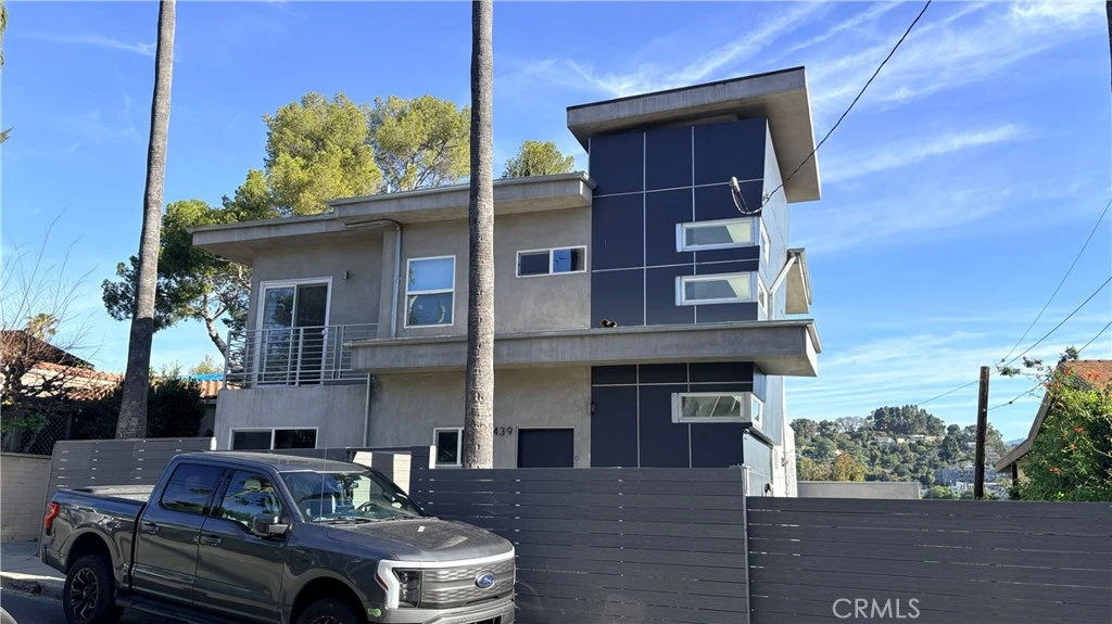 Private resort-style estate with stunning views of hillside homes and snow-capped mountains, located just two blocks above Sunset Boulevard near popular shops, restaurants, and cafés including Intelligentsia Coffee and Erewhon. The home features four bedrooms plus an attached studio ideal for a fifth bedroom, office, guest quarters, or rental. Enjoy a terraced backyard with lush landscaping, hot tub, and fire pit—perfect for entertaining. Custom kitchen with oversized island and dining area overlooking panoramic views. Spacious primary suite with walk-in closet, spa tub, and private balcony. Gated parking for three cars with 220V EV charging. Close to hiking and recreation at Griffith Park and the Griffith Observatory.