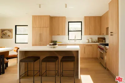Welcome to 3444 Redwood Avenue -- set behind two sculptural, mature trees framed by custom front planters on a generous corner lot in the coveted Mar Vista Wood Streets, this meticulously restored residence by A FRAME LAB offers a rare blend of architectural calm and artisanal detail where coastal breezes drift easily through light-filled interiors. A charming deck wrapped in redwood siding introduces serene spaces where every element has been thoughtfully curated. The main level opens with a sunlit living room and flows into a flexible downstairs bedroom. The moody powder room features a cleverly concealed shower, handmade tile, Spanish porcelain, Roman Clay walls, and custom-selected hardware that underscores the home's craftsmanship-first approach. At the heart of the home, a striking kitchen and den anchor everyday living. The kitchen is centered around a dramatic Bianco Rhino Italian marble island with waterfall edge and is outfitted with a Wolf oven, Fisher & Paykel refrigerator, built-in Reverse Osmosis water system, and bespoke hardware selections throughout. An adjacent den with built-in desk provides a warm, functional space for work or retreat. Oversized sliding doors open seamlessly to a newly completed backyard designed for effortless indoor-outdoor living. Lush, thoughtfully designed planting, enclosed by a tall, completely private fence, surrounds a brand-new pool and spa with integrated pool cover, redwood-clad patio, and a built-in BBQ with sink and refrigerator creating a private, tranquil setting ideal for entertaining or quiet daily enjoyment. Upstairs, the primary suite is a Roman Clay-drenched private sanctuary with a fireplace, lofted ceilings, walk-in closet, expansive balcony, and an oversized spa-like bathroom illuminated by custom lighting and refined finishes. Also on the upper level is a second bedroom, drenched in natural light, with its own en suite bath. Design-forward lighting by Noguchi Akari, Soho Home, Plato Design, In Common With, Santa & Cole, and Bocci is layered throughout the home, complemented by curated Watermark Brooklyn fixtures and handcrafted material selections. As part of the restoration, the home includes all-new windows, doors, HVAC, and a fully integrated smart-home system with security cameras, indoor/outdoor speakers, and a universal Tesla electric car charger. Completing the property is a fully detached and permitted 1-bedroom, 1-bath ADU with its own full kitchen, laundry, and Watermark finishesoffering meaningful income potential, guest accommodations, or flexible living options without compromise. Ideally located just blocks from Beethoven Market, Bluey's, and Penmar Golf Course, and moments from the best of Venice and Ocean Park, the home is also situated within the coveted Walgrove Avenue Elementary School district. A turnkey, design-driven coastal compound delivering craftsmanship, privacy, walkability, and a rare built-in value add in one of Mar Vista's most sought-after neighborhoods.