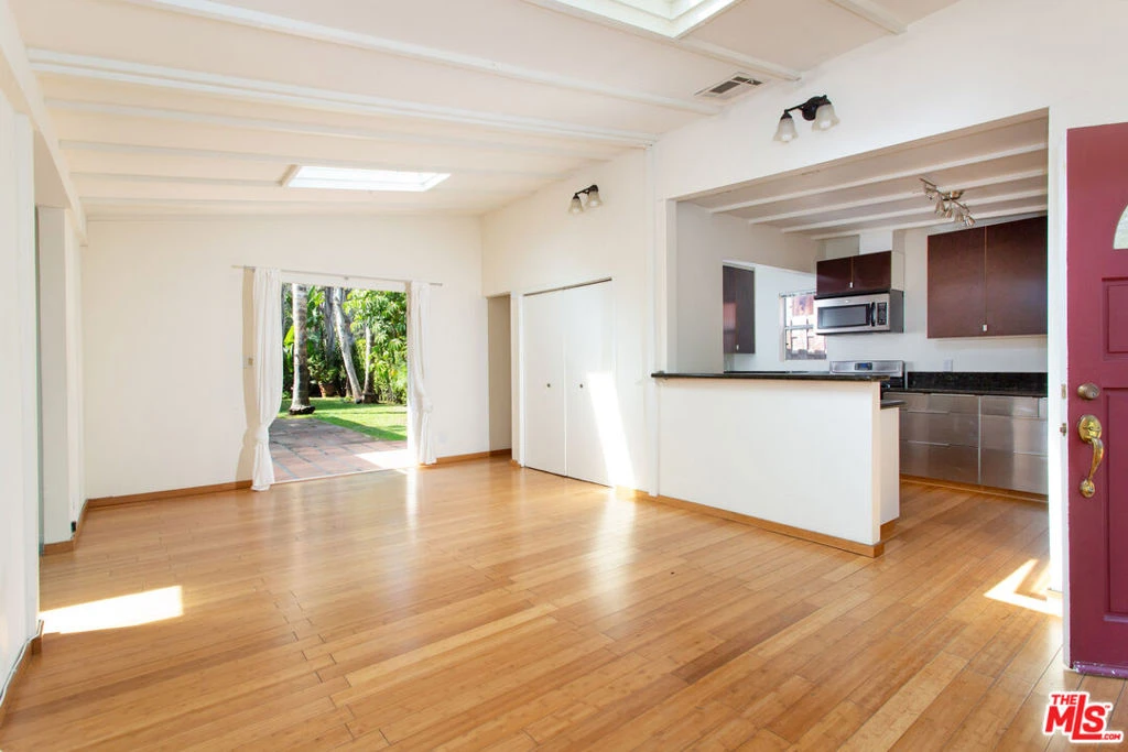 Beautifully updated and charming bungalow situated on a private, lushly landscaped lot with water permeable plants throughout. The main house offers two bedrooms and two bathrooms, featuring hardwood floors, abundant natural light, and an updated kitchen with granite countertops, stainless steel appliances, and a breakfast bar. The primary bedroom boasts French doors that open to an oasis-like backyard and patio, creating a seamless indoor-outdoor flow perfect for enjoying the California lifestyle. The finished garage has been thoughtfully converted into a studio complete with its own bathroom, offering flexible space for guests, a home office, or creative use. Ideally located within walking distance to award-winning Beethoven Street Elementary School and the Mar Vista Farmers Market, and just a short bike ride to the beach and Abbot Kinney, this home blends comfort, style, and convenience.