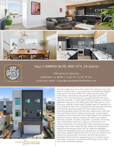 Please use 12610 Venice Blvd for directions as Verona CT is a new street and might not show on maps. A new construction luxury home in Mar Vista at an unmatched price. See it to believe it and before it is gone! Now offered at an exceptional value, this newly built modern luxury residence represents one of the most compelling opportunities in Mar Vista today. Embrace striking modern architecture and refined coastal living in this sprawling 4-bedroom, 4.5-bathroom single-family home. Spanning over 2,400 sq. ft. of meticulously designed living space, this residence is the ultimate contemporary retreat in the heart of 90066. Mar Vista is consistently ranked as one of the most desirable, peaceful, and walkable Westside neighborhoods in Los Angeles often ranked as a top-three spot for families. Thoughtfully designed with natural hardwood flooring throughout, the open-concept layout features a custom chef's kitchen, a warm fireplace, and a seamless indoor-outdoor flow. Immerse yourself in the ultimate lifestyle experience with a fully integrated sound system throughout the entire home.The private primary suite occupies its own level, boasting a spa-inspired bath, a massive walk-in closet, and a sunlit terrace for your morning coffee. Three additional en-suite bedrooms offer unparalleled privacy and comfort for family, guests, or a high-end home office. A private rooftop deck offers sweeping city and mountain views, while a private 2-car garage with direct entry completes this coastal sanctuary. Close to Abbott Kinney, Venice Beach, Farmers Market and Marina and Culver. With a walk score of 89.