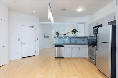 Discover refined living in the largest one-bedroom unit at The Mercury, a stunning adaptive-reuse loft-style condo situated on the prestigious Wilshire Corridor. Originally an office building, this remarkable conversion offers breathtaking views of Los Angeles complemented by luxury amenities. Step inside to find abundant natural light streaming through a striking wall of windows, illuminating an open-concept living space with high ceilings. The sophisticated design features high-end sliding glass doors that seamlessly separate the sleeping area, integrating style and privacy. The modern kitchen enhances the unit's flow, perfect for both everyday living and entertaining. Additional features include an expansive walk-in closet, in-unit laundry for convenience, and secured parking for peace of mind. The Mercury enhances your lifestyle with a rooftop terrace boasting a swimming pool, a state-of-the-art fitness center, and an outdoor lounge area offering incredible views, providing the perfect venue for relaxation and leisure.
