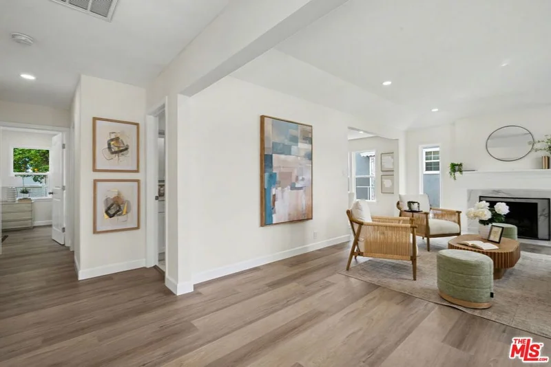 Newly renovated 3 bed/2.5 bath Traditional Gem. Filled with natural light, tons of character and designer updates throughout. Entry with art niche opens to open floor plan with spacious living room with stone finished fireplace and beautiful bay window. Dining room opens to remodeled kitchen with quartz countertops, brass hardware, newly installed cabinets and stainless steel gas range/oven and dishwasher. Full laundry room and powder room off kitchen with access to large grassy backyard with patio and mature citrus trees and gated driveway and detached garage. The home features 3 bedrooms, including primary suite with walk-in closet and stunning remodeled full bathroom. Additional features include central ac/heat, recessed lighting, new contemporary wood-look flooring throughout, all 3 bathrooms completely updated. Conveniently located closet to USC, Downtown, minutes to Culver City and Sofi Stadium. This home is ready to move right in!