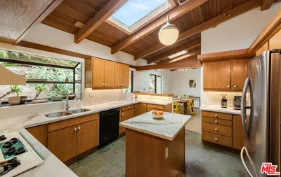 A timeless Mid-Century retreat in the heart of Los Feliz, expertly expanded by renowned architect Dion Neutra, offers a rare opportunity to experience sophisticated design in a tranquil setting. Tucked at the end of a private, newly paved driveway, the home exudes serenity while honoring the original architectural aesthetic. Signature design elements such as exposed wood beams, soaring ceilings, expansive glass walls, skylights, and a grand brick fireplace are seamlessly integrated into an open, airy floor plan that's perfect for modern living. The home features two spacious bedroom suites, each with its own en-suite bathroom and generous closet space, while an additional versatile room off the primary suite offers potential for an office, nursery, or den. Thoughtful upgrades include new AC units, Nest thermostats, and updated electrical panels, ensuring the home is move-in ready while preserving its vintage charm. Set on a generous 0.34-acre lot, the property is beautifully landscaped by Terremoto, with palm trees, eucalyptus, agave, and fruit trees. A terraced viewing post provides views of the Griffith Observatory and surrounding hillside. The 2-car carport, additional private parking, and ample space provides convenience and flexibility. Located within the sought-after Ivanhoe Elementary School District, this home is just moments from the best dining and shops in Los Feliz and Silver Lake, including the vibrant Hillhurst, Hyperion, and Rowena corridors. With its perfect blend of architectural elegance, outdoor tranquility, and prime location, this home is truly a rare gem not to be missed. Some furniture pieces are available if desired, please inquire.