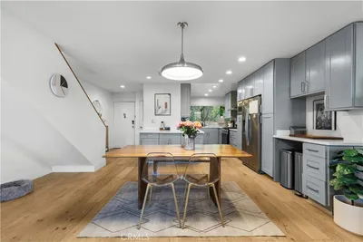 Welcome to this move-in ready architectural condo in the gated Skyline Townhome community, which was designed by noted architect Lorenzo Tedesco. Step inside to a light and airy open floor plan where floor-to-ceiling steel-framed windows and stunning floors create an atmosphere of warmth and sophistication. The seamlessly connected living and dining areas flow effortlessly into a remodeled kitchen, boasting sleek stone countertops, stainless steel appliances and ample storage space. Upstairs you’ll find two generously sized bedrooms and two tastefully updated bathrooms, including a luxurious primary suite that boasts a well-appointed ensuite bathroom. Additional highlights include in-unit laundry, two spacious balconies, a community pool/spa and two side by side parking spaces within the secured community garage. Centrally located between the Valley, Westside and Downtown LA, this property is just moments from the Hollywood Bowl, Universal Studios, Ventura Boulevard's vibrant shopping/dining scene and so much more.