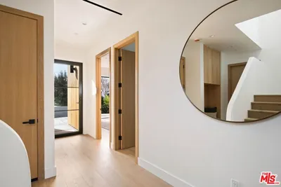 On a quiet street in coveted Del Rey, adjacent to Mar Vista, this newly built, move-in ready Japandi-inspired home by Jacobson Builders Group effortlessly blends elevated design with modern functionality. Offering 4 bedrooms, an office/flex space, and 4.5 bathrooms, this custom home with luxury finishes is crafted for both quiet daily living and sophisticated entertaining. The main floor features high ceilings, a sleek direct-vent fireplace, and expansive sliding doors that create seamless indoor-outdoor flow to the backyard with turf area. Flooded in natural light, the chef's kitchen features Thermador appliances, a large walk-in pantry, Taj Mahal stone countertops, custom oak cabinetry, and designer lighting, anchoring the open living and dining areas. Rounding out the downstairs is a large bedroom with ensuite bathroom as well as a flex room that can serve as a bedroom, office, or secondary living room with beverage fridge, vanity bar, and French doors. Upstairs, the primary suite with vaulted ceilings provides a private balcony, spa-inspired bathroom with freestanding tub, dual showers, custom vanities, and a spacious walk-in closet. Two additional ensuite bedrooms feature custom finishes and refined bathroom details throughout. Additional highlights include triple-pane custom aluminum windows and sliders, integrated speaker system, dual HVAC, wine room, large laundry room with custom cabinetry, wired security system, and a two-car direct-access garage with EV-ready plug-in. The fully gated exterior features drought-resistant landscaping and a blend of cement and cedar siding. Primely located in one of the most sought-after enclaves on the Westside of Los Angeles with central proximity to the restaurants, shopping, and entertainment in Marina del Rey, Venice, and Santa Monica, this turnkey home is not to be missed.