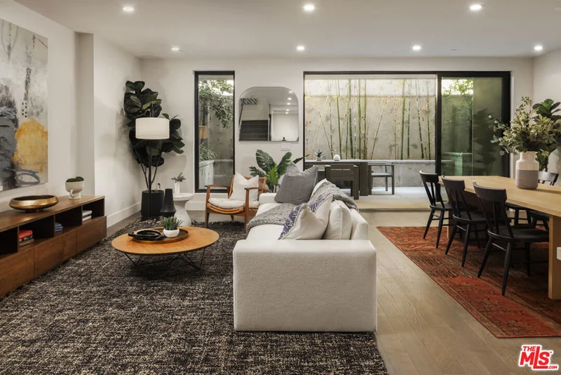 Welcome to Delyla, elevated living in Beverly Grove, just moments from premier dining and shopping on Robertson Blvd. Townhome 106 offers spacious dual-level living with 2-bedrooms, 2.5-bathrooms, and 2,187 SF of interior space, plus 490 SF of private outdoor space across a patio and balcony. Enjoy the convenience of 2 side-by-side assigned parking spaces in the secure subterranean garage. The open-concept main level features an expansive living area, gourmet kitchen, and a spacious private patio, perfect for indoor-outdoor entertaining. Upstairs, both bedrooms offer access to a large balcony. High-end finishes include Sub-Zero and Wolf appliances, Caesarstone polished quartz countertops, and Italian Gessi fixtures throughout. Spa-inspired bathrooms boast Statuario Maximus Caesarstone, Carrara Onyx tile, Duravit sinks, and anti-fog mirrors. Additional highlights include LED recessed lighting and sleek porcelain flooring throughout. Delyla offers premium amenities such as concierge service, controlled access, a community lounge, fitness center, and an outdoor lounge with pizza oven. Only two residences remain.