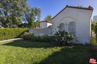 Discover this character-rich Spanish residence in the heart of Beverly Grove, offering timeless architecture and exceptional potential. Set on a desirable tree-lined street, this home showcases original hardwood floors and graceful arched entryways that reflect the craftsmanship of 1920's Los Angeles. Upon entry, you're welcomed into a dramatic living room defined by a vaulted ceiling and a stone fireplace. A centrally positioned dining room connects to the kitchen and open breakfast area, creating a functional and flowing layout. The primary suite features its own ensuite bath with a tiled shower. The expansive backyard is highlighted by a mature citrus tree, offering ample space for a pool or expanded outdoor entertaining. A covered patio and oversized detached two-car garage with additional bonus rooms add flexibility for a potential ADU. Whether treated as a fixer to restore its original Spanish elegance or as a teardown to completely reimagine and build new, this is a rare opportunity in one of Los Angeles' most sought-after neighborhoods, just moments from West Hollywood, The Beverly Center, The Grove, and premier dining and shopping destinations.
