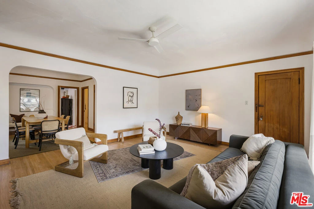 Charming & spacious Mediterranean 1920's New York style apartment that feels like a spacious home close to Los Feliz village. Over 1200 square feet includes living room w/high coved ceilings, formal dining room, breakfast room, laundry room. Period kitchen w/ ample cabinetry & storage, vintage stove & new retro fridge. One large bedroom, vintage tile bath/shower + den/office. Gorgeous rich old-world charm and original details, impeccable hardwood floors, mahogany doors w/crystal doorknobs, high ceilings, unpainted oak molding, original wood windows. Light & bright with great flow. Air/ Heat. One car garage plus driveway parking space. Vintage stove, new retro fridge & kitchen floors. One block to Hillhurst and all the amazing restaurants, stores & shops Los Feliz Village has to offer.