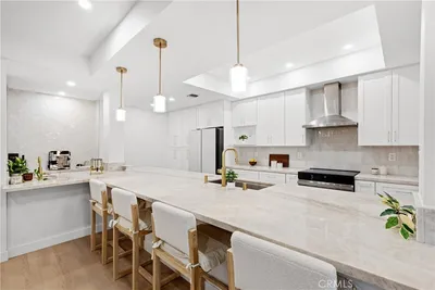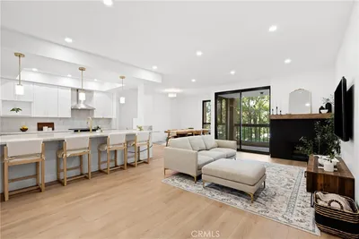 Welcome to elevated living in the heart of Hancock Park, where prestige and privacy meet timeless elegance. Quietly positioned on the north side of one of the area’s most sought-after condominium communities, this residence offers rare serenity just moments from the energy of the city. A dramatic double-door entry opens to a spacious foyer, revealing interiors defined by light and refined finishes. High ceilings, fresh new paint, chandelier accents, and recessed lighting amplify the airy layout, while McMillan luxury white oak laminate floors brighten the space and create a wider, more open feel. Newly installed designer light fixtures throughout elevate the home with curated lighting that enhances both ambiance and architectural detail. Floor-to-ceiling windows flood the living areas with natural light, creating a warm and tranquil atmosphere. Step out onto the balcony from the living room and enjoy peaceful tree-lined views. The elegant living room features a decorative fireplace and designer wet bar finished in glossy herringbone tile, including a wine & beverage fridge, flowing seamlessly into a formal dining area ideal for entertaining. At the heart of the home is a completely remodeled kitchen showcasing stacked glossy tile backsplash, stainless steel appliances, abundant cabinetry, and premium Taj Mahal stone countertops cascading over the surfaces. Over $100,000 has been invested in renovations, executed with no expense spared and reflecting exceptional craftsmanship throughout. The expansive primary suite serves as a private retreat with a generous walk-in closet plus an additional mirrored closet. The fully remodeled spa-style bathroom offers a double vanity, separate soaking tub, and dedicated shower room designed for relaxation. The guest bathroom has also been completely renovated with a beautiful vanity, new flooring, premium tile finishes, and a modern shower-in-tub design. Additional highlights include central air and heat, in-unit laundry, two side-by-side parking spaces, and a private storage room. Residents enjoy resort-style amenities including 24-hour security, controlled access, pool, spa, sauna, and a fully equipped fitness center. Located within the highly sought-after 3rd Street Elementary School District and surrounded by premier dining, shopping, and entertainment, this home delivers the perfect balance of luxury, comfort, and location. Move in and enjoy a residence where every major upgrade has already been done!