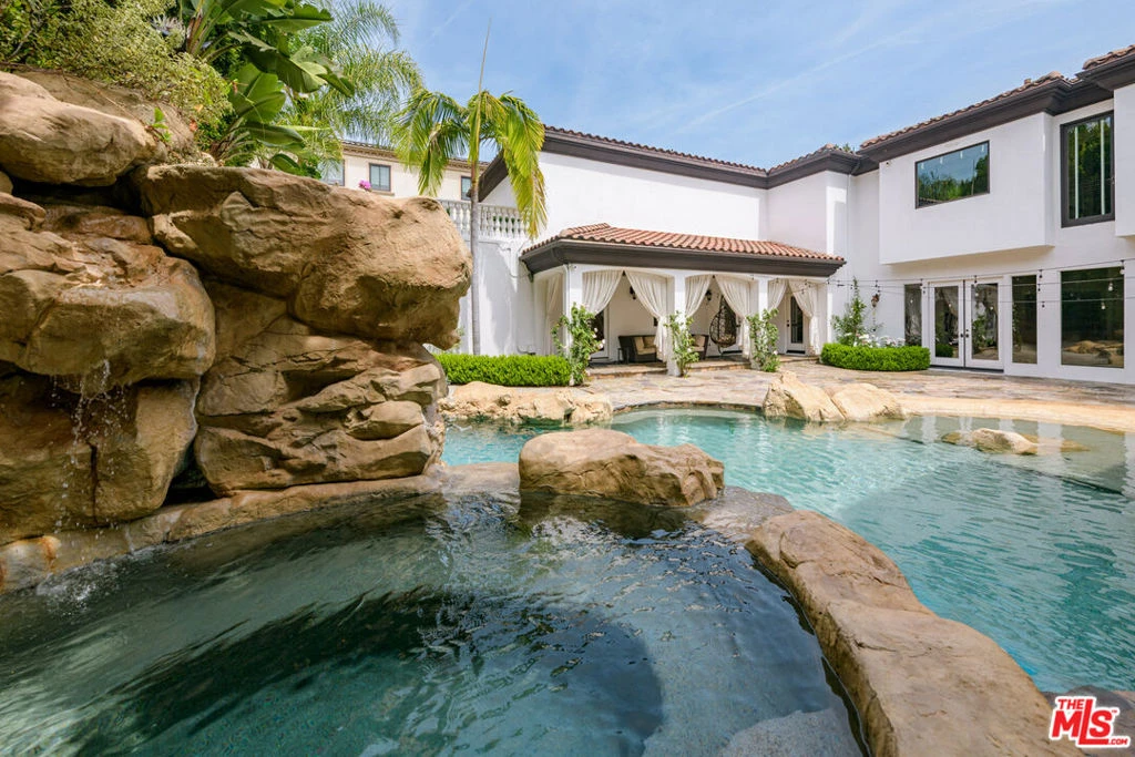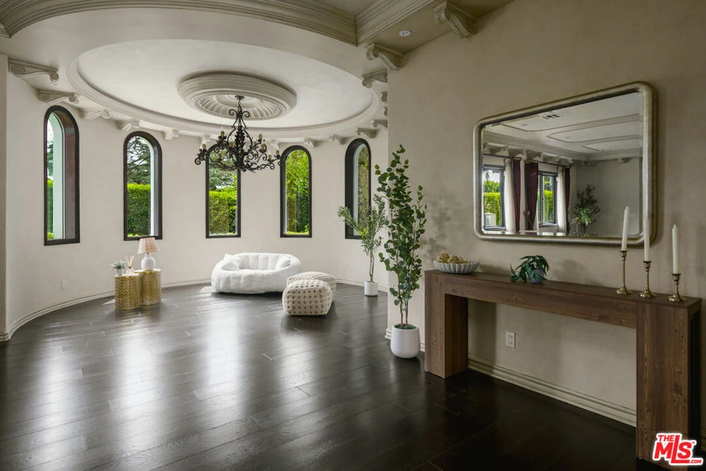 Set behind gates in prime Los Feliz this Mediterranean estate dazzles with beauty and grandeur, delivering endless space and a pool on expansive grounds. Sheltered from the street by high hedges and layered landscape, the stunning residence blends classic Spanish character with refined modern updates. Bathed in natural light, the home showcases signature coved ceilings, graceful archways, picture windows and tranquility. The estate spans approximately 9,633 sq ft with each space flowing effortlessly to the next which is grand yet intimate. A formal living room, anchored by a stately fireplace sits adjacent to the dining area, while the chef's kitchen with top-tier appliances and custom cabinetry flows seamlessly to the family room with 17 ft ceilings. A luxurious movie theater with private bar and top of the line sound system further impress while the wood paneled spacious office is both elegant and timeless. Six en-suite bedrooms are thoughtfully positioned with gorgeous baths including a primary suite of impressive scale and serenity. There is an additional bonus space to set up for a creative studio or home gym. The completely private backyard is a dream with sun-drenched saltwater pool w/ spa and cascading waterfall. Large four car garage and off street parking for seven cars. You're moments from neighborhood favorites All Time, Little Dom's, Wilde's, Maru, Griffith Park trails and everything Los Feliz has to offer.