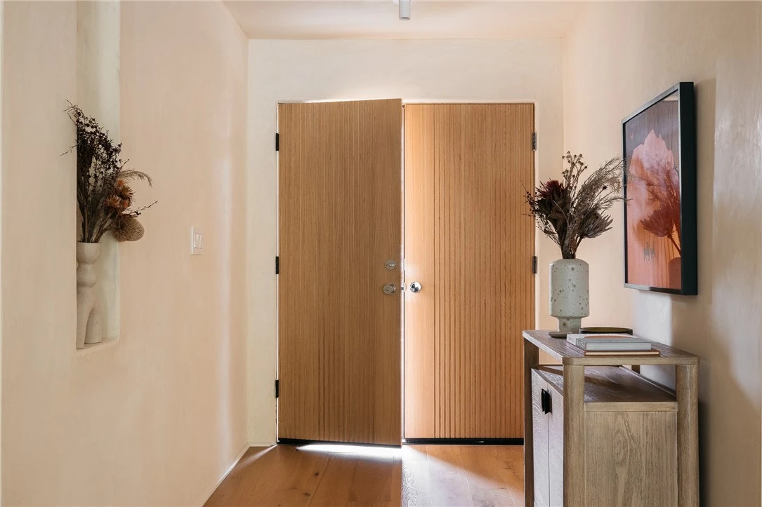 Set along a quiet, peaceful stretch of Round Top Drive, this 3-bedroom, 2-bath residence has been thoughtfully reimagined by Bungalowe, blending elevated design with a warm, livable feel on a generous lot. Inside, the home opens to a calm, cohesive interior where smooth plaster walls, natural textures, and clean lines create a grounded, organic aesthetic. The living space centers around a fireplace and flows effortlessly into a well-designed kitchen, complete with generous storage, designer lighting, and a refined mix of materials that feel both modern and timeless. A dedicated dining area anchors the space, making it equally suited for everyday living or hosting. The primary suite is positioned as a true retreat, spacious, private, and complemented by a large, well-appointed bathroom designed with comfort in mind. Two additional bedrooms offer flexibility for guests, family, or workspace, all tied together by a consistent design language throughout. Outdoors, the property opens to a serene, tree-covered setting that feels private and tucked away. Mature trees provide natural shade and character, while the generous lot offers a peaceful backdrop for relaxing and entertaining. Behind the scenes, major system upgrades, including plumbing, electrical, HVAC, and a tankless water heater, bring a level of quality and peace of mind that matches the design. Round Top offers a lifestyle that’s hard to replicate—quiet and secluded, yet just moments from neighborhood favorites. With a two-car garage, ample parking, and Bungalowe’s signature attention to detail throughout, this is a home that delivers on both design and everyday function