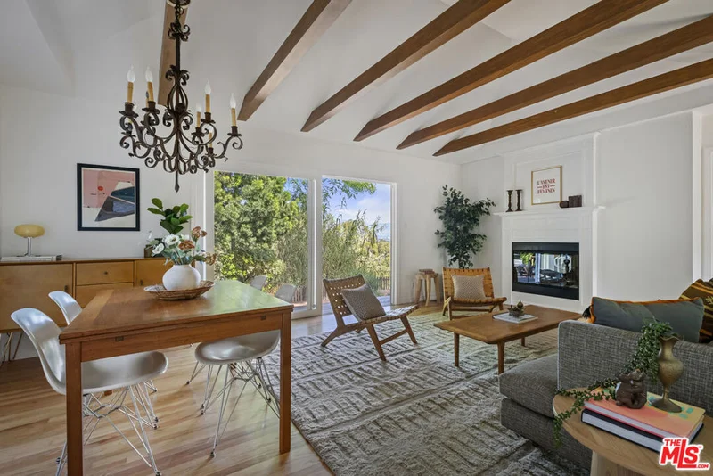 A stunning Mount Washington escape with snow-capped mountain vistas is the perfect place for privacy and quiet, nature exploration and sightings of soaring hawks and birds (binoculars included). This 1950s bungalow features 2 bedrooms and 2 beautifully upgraded baths with heritage tile, oak hardwood floors and a seemingly endless amount of built-ins. Rare 28-light French doors off the central hallway open to a primary suite with a double-sided fireplace, separate areas for lounging and working, and walls of glass looking out to the magical garden and views of the San Gabriels. The light and bright kitchen packs a punch with custom cabinetry, a black soapstone sink, luxury appliances including a double oven and a walk-in pocket pantry designed for the serious home chef. The heart of the home is the grand living room with a dramatic exposed boxed-beam ceiling, the other side of the double fireplace and floor-to-ceiling sliding doors that create the feeling of living not "close to" but "in" nature. A perfectly built-in office off the kitchen checks yet another box, but that's nothing compared to the over 320 square foot garage that is not only rare for this part of MW, but could be transformed into additional living or studio space (there is also a giant parking pad). Not to be outdone, the over 8,000 sq ft lot planted with delicate natives, lush angel's trumpets and privacy trees provides an entertainer's paradise with separate areas connected by curving paths of aged red brick. All this and you are moments from the top of the hill and the award-winning elementary school, yet equally close to everything Northeast LA has to offer in terms of shopping, culture, craft cocktails and not one, but four Michelin Guide featured restaurants.