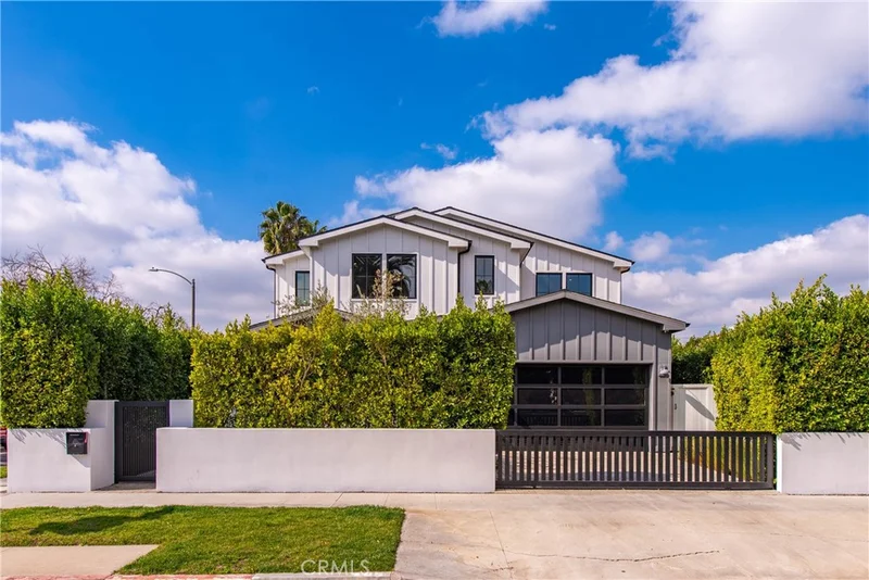 This magnificent Modern Farmhouse estate combines luxury with contemporary comforts of beautifully crafted living space on a spacious private corner lot. This spectacular home features five designer perfect en-suite bedrooms with automatic window shades, a private guest suite with an additional sitting room in the lower level. The main floor boasts an open-concept living space illuminated by natural light, seamlessly integrating the living room and dining area to the gourmet kitchen and family room. This contemporary style blends outdoor and indoor living with panoramic sliding doors to the patio and back yard. Culinary aficionados will adore this kitchen, expertly designed with dual sinks, Thermador appliances, generous marble island and complemented by a butler’s pantry, also well suited for Kosher cooking requirements. The temperature controlled wine room completes your entertaining needs. The expansive private grounds encompass a sparkling pool and spa, an ambiance fire pit, and a nicely appointed separate free standing office/guest room with a wine bar and private bathroom. The home is equipped with state-of-the-art amenities, including a professional theater room, a comprehensive smart home system, and a central vacuum. Located just moments from Larchmont Village and The Grove, this exceptional estate presents a rare opportunity to experience the epitome of Los Angeles luxury living.