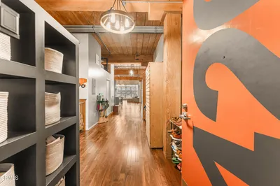 Serene Courtyard Loft with Industrial Character in the Heart of the Arts DistrictA dramatic wall of floor-to-ceiling windows frames tranquil courtyard views of blue sky and distant mountains, filling this stylish loft with natural light throughout the day. The wide, open floor plan and soaring ceilings create an airy sense of volume, while authentic 1920s wood beams and posts showcase the building's rich industrial heritage. Designed for both comfort and versatility, the expansive layout easily accommodates distinct living, dining, sleeping, and workspace zones. Whether creating a dedicated home office, creative studio, or generous entertaining area, the open design allows for seamless flow while maintaining clearly defined spaces. The recently updated kitchen features a modern backsplash, open floating shelves, and a functional center island with additional cabinetry, blending style with everyday practicality. The bathroom has also been thoughtfully renovated with new flooring and tile, offering a fresh, contemporary feel. Residents enjoy one gated, attached covered parking space and 24/7 on-site security. A recently renovated resort-style rooftop provides a heated pool and spa, cabanas, BBQ areas, fire pits, and a fully equipped fitness center--an ideal extension of sophisticated urban living. Perfectly located across from Arts District Park and just moments from acclaimed restaurants, coffee houses, museums, and galleries, this home also offers convenient access to Metro and train stations as well as major freeways. Experience vibrant, design-forward living in one of Downtown LA's most sought-after neighborhoods.