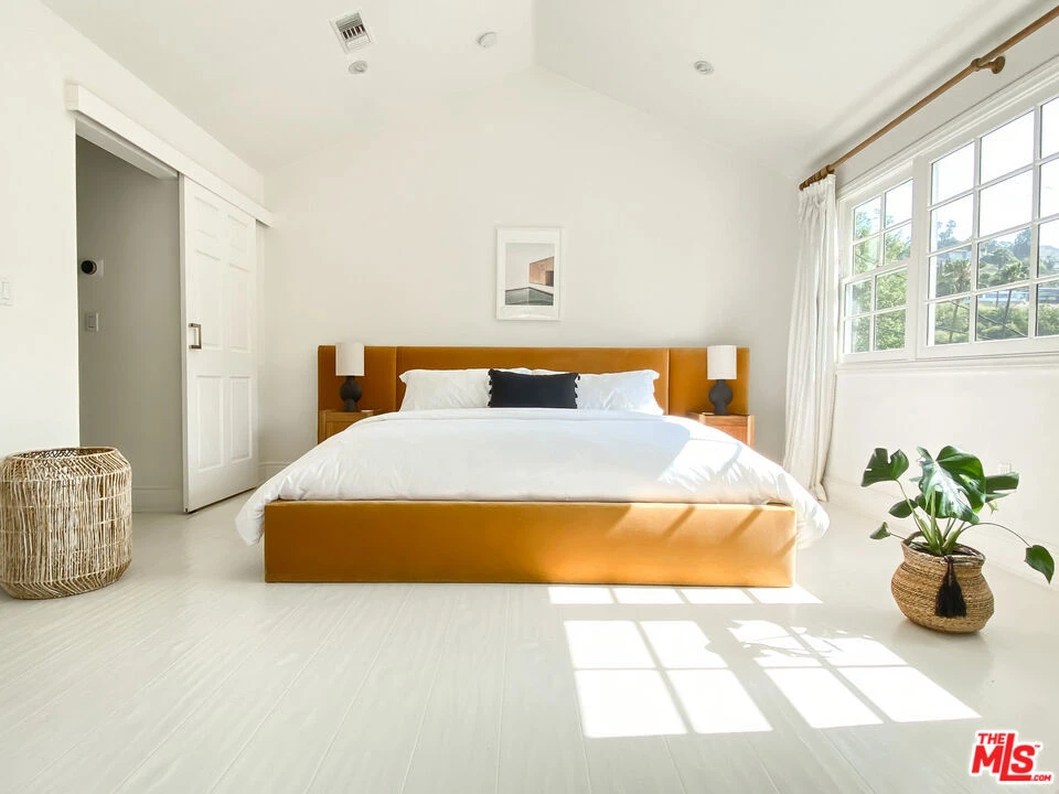 *Furnished Home Avail mid March - 3 month minimum* Minimalist Hollywood Hills Home with Tranquil Pool. Tucked away in lower Bronson Canyon Oaks, this sun-soaked hideaway features a backyard oasis framed by sweeping hillside and canyon views. A large free form pool and spa invites lounging, while hillside outdoor living flows indoors to an expertly designed and tranquil retreat, featuring three bedrooms plus a guest suite/office. Nestled among beautiful and walkable streets, yet minutes away from the heart of Hollywood, Franklin Village and Los Feliz. An expansive great room, outdoor flow from every room is the epitome of LA living. The living room's painted floors, classic crown molding juxtaposed with Scandi custom built-ins and mid-century furnishings is inviting and modern. The voluminous central space blends living, dining & kitchen in one bright, airy expense with ample windows and French doors to invite light and air. A sleek chef's kitchen sets the stage for relaxed cooking and intimate dinners, with a center island, Sub Zero fridge, two sinks and Viking range. Three well appointed bedrooms lie on the main level, including a spacious primary suite with King bed, walk in closet, spa-like ensuite bath with separate tub and shower and French doors that open to the outdoor patios, pool and spa. Downstairs, the oversized, home office/guest studio has direct access outdoors, and features a queen sofa bed. The private backyard feature a sparkling pool, spa, firepit, built-in seating, grassy yard and large patio nestled into the hillside's natural typography and encircled by your own private bluff, old growth trees and canyon views. Electric Car charger in garage. Stay longer, and make this your second home! ***NOTE*** Advertised Rate is for 7 month + lease only , no utilities included, for 3-6 month stay = $17000 (basic utilities, no pool heating incl- separate cost ). Minimum 3 month, subject to availability. Security Deposit : 1 month rent + for all leases, subject to application. Must be rented Furnished ONLY. 4th bedroom is attached guesthouse set up with home office and sofa bed. Tenant Pays one time $1000 fee for Host Fee in lieu of Airbnb Fees. Pool Heating is not included -Separate cost. Enquire for Details.