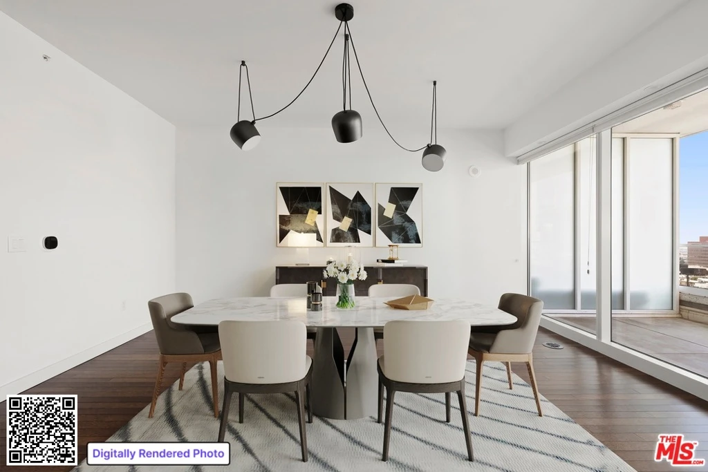Penthouse with Panoramic Views & Expansive Terrace at the W Residences Hollywood. Experience luxury living in this 12th-floor west-facing corner penthouse at the W Residences Hollywood, offering exceptional privacy, quiet, and sweeping views from Beverly Hills and Century City to the Pacific Ocean. Enjoy beautiful sunsets from your private terrace of approximately 400 sq. ft., perfect for indoor-outdoor living and entertaining. This spacious 1-bedroom, 2-bath open-concept residence spans over 1,500 sq. ft. and offers flexibility to create a home office, guest space, or fitness area. The dining area features custom FLOS overhead lighting and a built-in wall system with a queen-size Murphy bed from Resource Furniture, allowing the space to easily double as a guest room. The primary bathroom has been upgraded with a new vanity, custom cabinetry, and Heath tile, while the guest bathroom includes a new custom vanity/cabinet and RH mirror. The home also features new custom LED lighting throughout, creating a stunning ambiance in the evenings. Lighting and thermostat systems are remotely programmable via smartphone for added convenience. Additional upgrades include a Heath Ceramics tile backsplash and Porcelanosa tile flooring in the kitchen, along with custom Hunter Douglas top-down/bottom-up window shades. Residents enjoy full-service luxury amenities, including concierge, valet, room service, and a 1/2-acre resident-only rooftop with resort-style features. The building is currently undergoing renovations to become the West Coast flagship W Residences, with demand and values expected to rise. This penthouse also includes two upgraded wide parking spaces. A rare opportunity to own a spacious luxury residence with breathtaking views in one of Hollywood's most desirable full-service buildings.