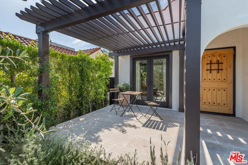 Charming, gated 3BR+2BA Spanish-style home, in the heart of Melrose Village. Filled with natural light and classic architectural character, the home features hardwood floors, recessed lighting throughout and a spacious living room that flows seamlessly into the dining area. The updated kitchen features stainless steel appliances including a Wolf oven, Subzero refrigerator, a wine fridge and generous cabinet and pantry storage. Family room is located off kitchen. Two private decks extend the living space outdoors, one off the family room and another off the primary bedroom, offering inviting spots to relax, dine or entertain. The home offers spacious bedrooms with ample closet space, including a primary suite featuring a walk-in closet and en-suite bathroom. Thoughtfully landscaped front and backyard spaces provide privacy with mature hedges and lush greenery. The expansive lot offers multiple outdoor areas to enjoy, including a vegetable garden, built-in BBQ and fire pit, perfect for outdoor dining and relaxed evenings. A detached two-car garage offers excellent potential for an ADU, studio or creative workspace. The property is secured with a new sliding driveway gate and pedestrian entry gate. Ideally located just moments from The Grove, Larchmont Village, Melrose shopping and some of the best dining and entertainment in Los Angeles.