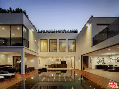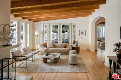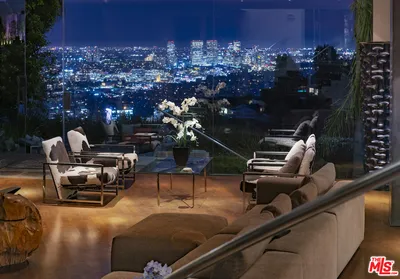 Celebrity-owned organic modern farmhouse on a quiet cul-de-sac beneath the iconic Hollywood Sign, moments from the trails, reservoir, and Lake Hollywood Park. Private and secure, this sophisticated estate blends warmth, scale, and effortless indoor-outdoor living... high design that remains relaxed, livable, and perfectly suited for family life. Spanning over 6,200 square feet, the home offers six ensuite bedrooms and beautifully designed gathering spaces ideal for both everyday living and large-scale entertaining. The main level unfolds with an airy, light-filled floor plan connecting formal and informal living spaces. A gourmet kitchen anchors the home, outfitted with a Thermador appliance suite, oversized center island with bar seating, and a generous butler's pantry. Walls of glass open the family room to a lush and private backyard featuring a pool, spa, fire pit, and outdoor cabana/guest quarters complete with kitchenette and bath ideal for guests, creative space, or extended family. Upstairs, four ensuite bedrooms include a stunning primary retreat with a sitting area and fireplace, oversized walk-in wardrobe, and spa-inspired bath with dual vanities and freestanding soaking tub. The lower level offers exceptional entertaining amenities with an additional ensuite bedroom, lounge or playroom, wine cellar, bar, and a custom home theater with projection screen and dramatic starlight ceiling. A rare offering combining privacy, scale, and thoughtful design in one of the most iconic settings in Los Angeles.