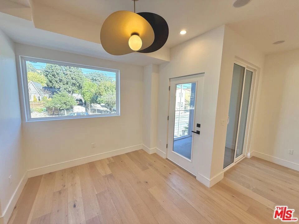 New construction modern residence in prime Highland Park offering 3 bedrooms, 3.5 bathrooms, and approximately 1,900 sq. ft. of light-filled living space. Open-concept floor plan features a designer kitchen with waterfall quartz countertops, custom cabinetry, matte black fixtures, and premium built-in appliances, flowing seamlessly into the living and dining areas. Wide-plank white oak flooring and modern finishes throughout. All bedrooms include en-suite bathrooms, ideal for flexible living or guests. Enjoy three private balconies plus an expansive ~670 sq. ft. rooftop deck with sweeping city and hillside views, perfect for entertaining. Additional features include a private two-car attached garage, in-unit laundry hookups, and energy-efficient systems. Conveniently located near York Blvd and Figueroa St dining, cafes, shops, and nightlife with easy access to Pasadena, Downtown LA, and Hollywood.