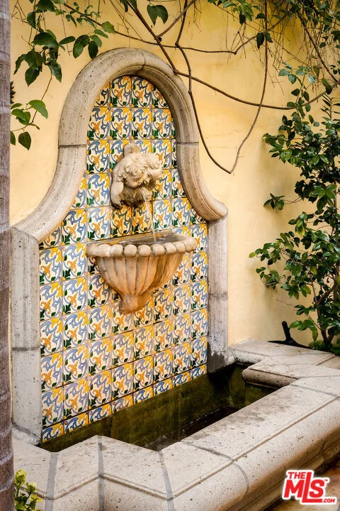 The ultimate Spanish Revival on one of Outpost Estates' most sought-after streets, walled and gated for exceptional privacy. Enter through the front gate into a stunning courtyard with a tranquil fountain, lush landscaping, and dramatic nighttime lighting. From the moment you step inside, you're greeted by a breathtaking, head-on city view. The floor plan is ideal-gracious, flowing, and beautifully proportioned throughout. The living room is a true pleasure to relax in, while the spectacular, remodeled chef's kitchen, ( which is an absolute pleasure to create in), opens seamlessly to an expansive family room, creating an extraordinary space for everyday living and unforgettable entertaining. These rooms spill out to a generous terrace overlooking the city lights. The primary suite is a private retreat with a sitting room, terrace, remodeled bath, and a large walk-in closet-all enjoying the captivating views. A fully self-contained guest suite offers its own kitchen, living room, bedroom, and bath. Spacious, warm, and inviting, this quintessential California hacienda offers serene living in a peaceful, quiet setting.