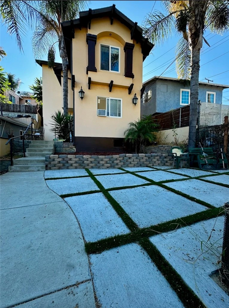 Newer construction, VACANT 2 Units!!! (1) three bedroom two bath (1) One bedroom one bath. Hillside Duplex in Up and coming neighborhood of East LA. Spanish inspired design with Wood laminate floors. Beautiful terraced yard. Washer and dryer Detached 2 car garage. Live in one and rent the other. Perfect home to a starting family and investing. Minutes away from the art district and 10 minutes away from Downtown LA.