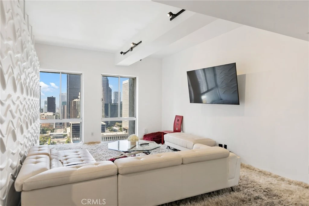 Spectacular city lights and sunset views from the 22nd floor complement this spacious open concept residence at prestigious Bunker Hill Tower. Its contemporary interior design is highlighted by floor to ceiling glass walls, raised ceiling w/ finished beams, wavy textured wall panel and LED track lighting throughout. The open bedroom features incredible views down Grand Ave. An updated bath features a glass walk-in shower, floating vanity w/ mirror and white lacquer linen cabinet. The stunning kitchen is outfitted with stainless steel appliances, double door refrigerator, gas stove top w/ custom backsplash and vent hood. This unit also includes 1 assigned and guest parking space, 24hr attended front desk and more. HOA dues includes all utilities: water, trash, gas, electricity, internet and basic cable. Bunker Hill Tower is an exclusive residential community offering unparalleled amenities like swimmer's pool, tennis and pickleball courts, fitness centers and private event space! Call this incredible space home!