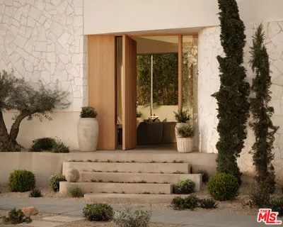 An architectural home defined by craftsmanship, materiality, and atmosphere in a highly coveted West Hollywood enclave. This 3 bedroom, 3.5 bath home balances flowing curves with luxurious interiors and a highly refined material palette. Travertine floors and surfaces, custom white oak cabinetry, and hand-applied plaster walls create depth and continuity throughout, while natural light moves seamlessly across the interiors, emphasizing texture, curvature, and proportion. Every element is intentional, prioritizing quality, restraint, and livability. The private rear yard is anchored by a 35-foot travertine-clad lap pool surrounded by greenery, offering a quiet retreat while also seamlessly integrating with the interior. Above, an expansive rooftop deck captures sweeping hills views; idyllic for entertaining and indoor/outdoor living. A rare architectural offering defined by atmosphere and enduring modernity.