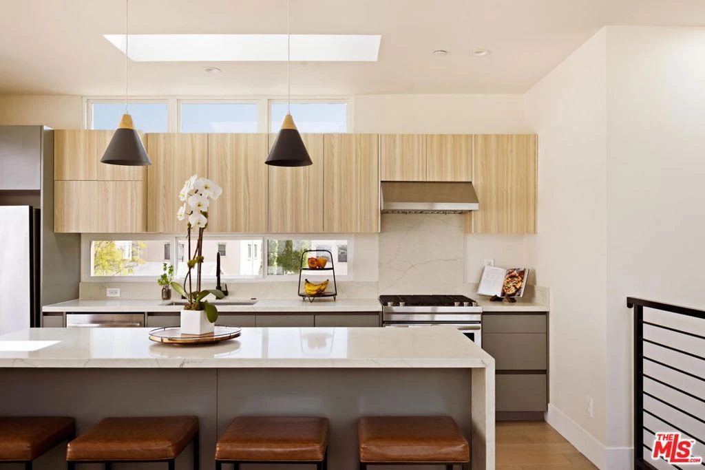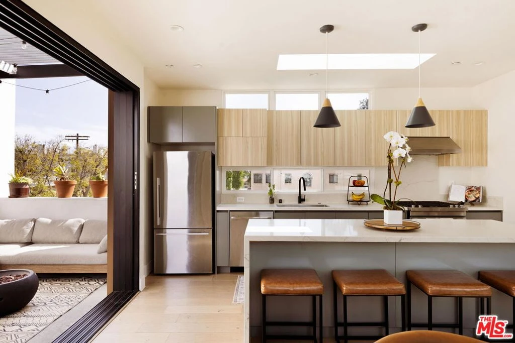 Stunning architectural home just north of Hancock Park, moments from the highly sought-after Hollywood Media District. Newly built in 2021, 836 1/2 McCadden Place is a gated 3-bedroom, 3.5-bath residence offering over 2,000 square feet of thoughtfully designed living space. The open-concept layout is finished with high-end designer details throughout, including French oak hardwood floors, Italian porcelain tile, and a chef's kitchen featuring custom cabinetry and a spacious eat-in island. Oversized windows and skylights flood the home with natural light, creating an ideal setting for both everyday living and effortless entertaining. All three bedrooms feature en suite bathrooms, with the primary suite offering a generous walk-in closet. The first level also includes a convenient laundry room. Designed with indoor-outdoor living in mind, the kitchen opens to a private patio through accordion-style bifold glass doors, where a newly added pergola creates the perfect space for hosting and al fresco dining. An additional patio off the living room and primary suite offers picturesque city and mountain views.Additional highlights include a direct-entry two-car garage and a prime, walkable location near SiriusXM offices, Sightglass Coffee, Petit Trois, Osteria Mozza, boutique shopping along La Brea, and Heimat Gym. A seamless blend of modern design, comfort, and elevated California living.