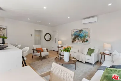 Located on a Sycamore-lined residential block triangulated between Hancock Park, West Hollywood, and Hollywood, find this light and bright 2 bedroom, 2 bathroom condominium in a down-to-the-studs remodeled 4-unit building completed in 2023. This front-facing, top-floor unit boasts a lengthy list of aesthetic and functional must-haves and high-end upgrades while being the largest unit in the building. Standouts include beautiful wide-plank oak floors, new Milgard dual-pane windows, 3-zone high-efficiency HVAC, all-new plumbing, electrical and roofing, and an in-unit washer and dryer. Highlighting the interior is a true chef's kitchen with custom cabinetry, Quartz countertops, and a Bosch gas range with 6 burners. The oversized primary suite features a walk-in closet and an en-suite bathroom with a large soaking tub. The large second bedroom looks out onto the lush street and has ample closet space. The property's location provides easy access to the best of LA, with a quick drive to the 101 freeway and a 93 Walk Score. Sprouts grocery, Tatsu Ramen, Mozza, Petit Trois, Tartine Bakery, Sightglass Coffee, and countless other neighborhood faves on the La Brea, Santa Monica, Highland, and Melrose strips are all within a few blocks. The building has a safe and secure gated attached parking lot with 2 reserved, side-by-side covered spaces with a NEMA 14-50 outlet and easy, permitted guest parking on the street. The front of the building has a communal dog run with an eco-friendly lawn. HOA covers water, sewage, trash, landscaping, and an exterior security camera system. Enjoy the ultimate in comfort and convenience in this beautifully appointed condominium, where luxury meets functionality in a prime Los Angeles location.