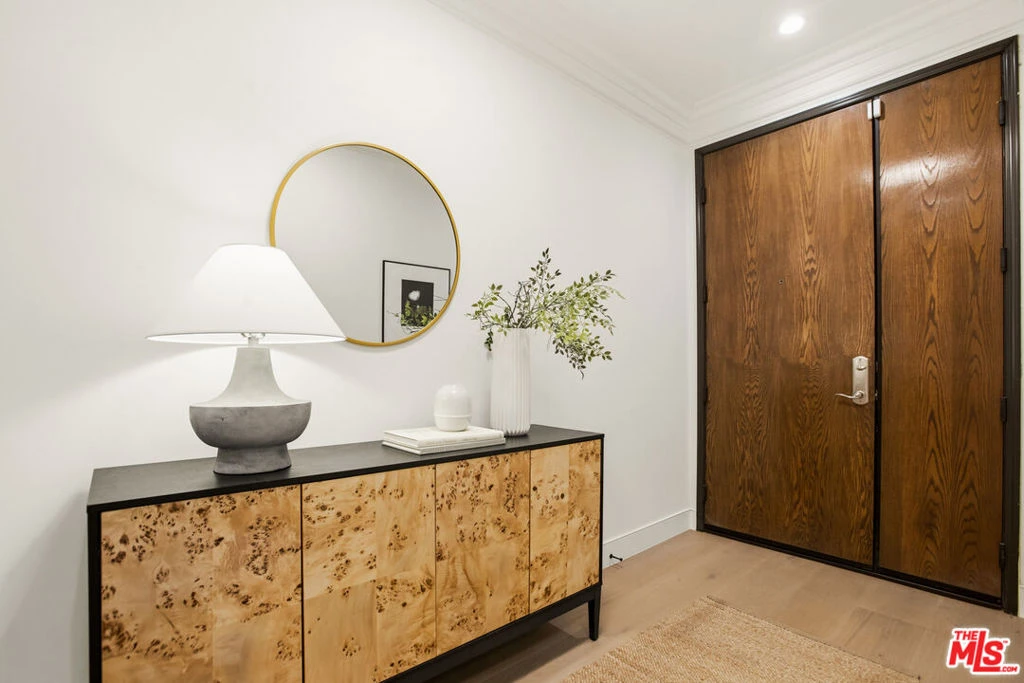 Welcome to 850 N Croft Ave, a move-in ready, fully remodeled 2-bed, 2-bath condo with 1,541 sq. ft., tucked in the quiet rear corner of a boutique 2003 Mediterranean building of just 24 units. The building features an interior open-air courtyard with mature landscaping and fountain, creating a quiet, open-air atmosphere as you arrive and depart. Inside, wide-plank hardwood floors and plantation shutters adorn the space. The open living area features a chef's kitchen with stainless steel appliances, a gas stove, and a wrap-around countertop with bar seating. The dining area offers a fireplace and step-out terrace with sliding doors. The expansive terrace with multiple seating areas is accessed off the office/den flex space. Opposite-side bedrooms provide privacy with the primary suite with a spa-like bath, deep soaking tub, separate glass enclosed shower, double vanity andlarge walk-in closet.In-unit laundry, central HVAC, 2 secure parking spaces, plus subterranean guest parking and private storage. Backing multi-million-dollar homes, this lock-and-go luxury building with earthquake insurance is steps from Melrose Ave., La Cienega and Santa Monica Blvd's best dining, shopping, and nightlife, creating an all around ideal option for entertaining or quiet comforts of home.