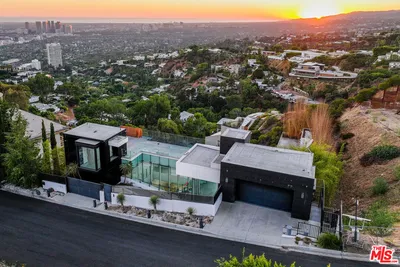 Meticulously crafted by NOBEL Design and Architecture Studio, this contemporary estate spans approximately 14,000 SF and sits privately on a rare one-acre parcel in the coveted Bird Streets. Positioned to command uninterrupted sightlines from the Pacific Design Center across West Hollywood and onward to the Downtown skyline, the property is quietly dramatic, unfolding through a series of intricately designed living spaces.The interior opens into soaring ceilings and walls of glass that frame the surrounding landscape and allow light to move fluidly throughout the day, casting intentional shadow and depth across every surface. The voluminous open floor plan creates a continuous dialogue between interior spaces and the outdoors. A grand formal living room is anchored by a double-height fireplace wrapped in ribbed travertine and custom iron detailing, while nearby, a more intimate lounge and bespoke bar area provide the perfect setting for evening gatherings. These spaces flow seamlessly into the dining area and kitchen, allowing for effortless hosting. The custom chef's kitchen serves as both a functional workspace and a visual focal point, outfitted with top-tier appliances and center island. Positioned to overlook the living and dining rooms, it maintains a strong connection to the heart of the home while remaining grounded in craftsmanship.The primary suite is a true sanctuary, defined by generous volume and quiet privacy, and features a large walk-in wardrobe alongside an indulgent bath complete with dual vanities, a stone soaking tub, and an oversized shower. Each of the additional four bedrooms is proportioned for comfort and includes its own en-suite bath, offering privacy and flexibility for family or guests. Health and wellness were thoughtfully integrated into the design, with a dedicated spa and salon area finished in richly toned burgundy marble, accompanied by an expansive terrace that opens to sweeping views. A striking movie theater, designed with sunken seating and a subtle nod to 1970s, offers a completely immersive experience.Outdoor spaces are as intentional as the interiors. A long, linear pool extends toward the horizon, fitted with heated in-water lounge chairs that invite hours spent suspended above the view. Broad, level lawns create rare usable outdoor ground, ideal for open-air dining or recreation, while mature landscaping frames the property without obscuring its outlook.Privately gated with parking for up to ten vehicles, the estate offers immediate access to the energy of the Sunset Strip and the amenities of Beverly Hills. It is a residence defined not by excess, but by precision where architecture, environment, and experience align with uncommon clarity.