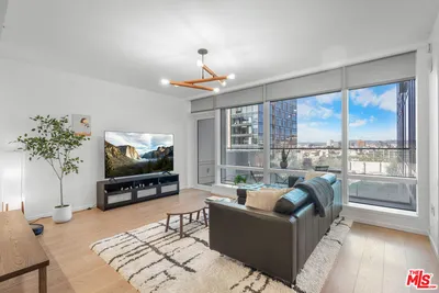 NEWER LUXURY CONDO, RARE UNIT WITH BALCONY - It's one of the very few units at this building with a balcony and with these views, it's definitely a special one. Ideally facing west to capture stunning sunset views and a gorgeous cityscape, Residence 1116 at the popular Metropolis II Towers offers an exceptional living experience. As one of the most magnificent high-rise condominium buildings in Los Angeles, this residence welcomes you with guarded security and an impressive lobby featuring soaring ceilings, attentive concierge service, and sophisticated finishes that set the tone for this urban oasis. Upon entering Residence 1116, you're immediately greeted by breathtaking west-facing views that flood the space with natural light. A convenient coat closet and powder room lead you into a beautifully designed open-concept kitchen, dining, and living area, perfect for today's most discerning buyer who values seamless entertaining and modern living. Step onto your private terrace off the living room and immerse yourself in panoramic city views while savoring your morning coffee or evening wine. This is your personal retreat above it all. The generously sized bedroom features two thoughtfully designed closets: a walk-in and an organized shoe closet with shelving. The luxurious ensuite bathroom showcases elegant stonework surrounding the tub and a sleek floating vanity, creating a spa-like atmosphere. At just under 1,000 square feet, this condominium delivers the perfect balance of luxury and livability. To add, there is great closet space in this particular plan and that is an important item for many. There is a double door coat closet in the entry, there's a storage closet in the living room, two closets in the bedroom, and there's another storage closet in the powder room. The building's exceptional amenities elevate your lifestyle with a sophisticated club room, billiard room, business center, fitness facility, resident lounge, and locker rooms complete with steam room. The outdoor amenities are truly spectacular: a stunning glass-walled outdoor kitchen, resort-style pool, hot tub positioned to capture those mesmerizing west-facing city views, dog park, children's playground, beautifully landscaped park areas, and inviting sitting spaces throughout. This is truly a place you'll be proud to call home. The location is unbeatable as you'll be surrounded by incredible dining destinations including the new Javier's and Mastro's, with convenient access to Whole Foods and the highly anticipated Erewhon Market opening in 2027. Cultural attractions like the renowned MOCA, The Broad, and Walt Disney Concert Hall are just moments away. Make your appointment today. This exceptional residence won't last long.