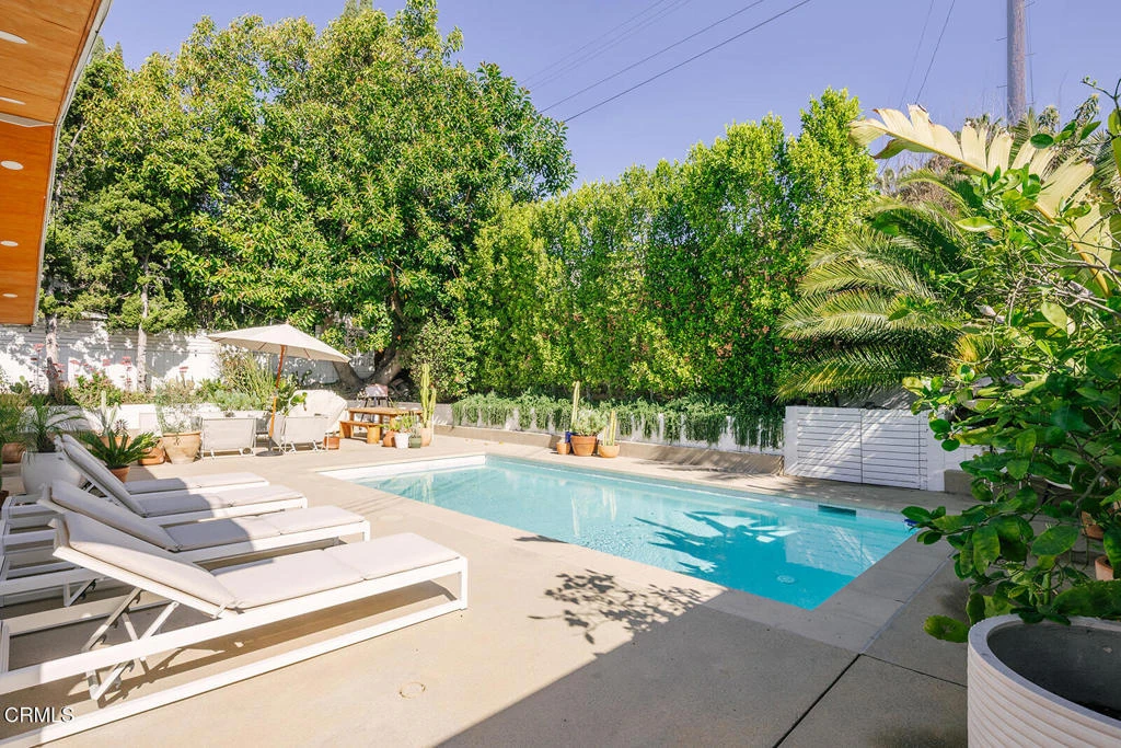 This chic 1960s mid-century modern ranch with a glimmering pool offers the perfect blend of tranquility and city access in one of Northeast LA's most desirable hillside enclaves, the Arroyo View Estates. Set among a collection of approximately 200 thoughtfully designed mid-century modern homes on quiet, winding streets, this residence captures the essence of effortless California living - casual, comfortable, and designed for both relaxation and entertaining.Inside, beyond the gracious entry vestibule, a large, updated chef's kitchen anchors the home, opening seamlessly into an expansive dining and living area with a natural flow that's perfect for everyday living or hosting gatherings. The other wing of the house features three generously sized bedrooms with ample closet space, including an airy primary with its own ensuite bathroom and walk-in closet. Outside is a true entertainer's dream: a retreat-like backyard centered around a sparkling pool and private oasis for lounging, dining, and enjoying Southern California's year-round sunshine. Additional highlights include a two-car garage and a driveway for easy parking and convenience.All of this, just minutes from some of Northeast LA's most beloved spots, including Amara Kitchen, Highly Likely, Comet Over Delphi, and Hermon's, along with easy access to the 110 and 134 freeways. This is a rare opportunity to live in a piece of mid-century design in a peaceful hillside setting without sacrificing proximity to the best of Los Angeles.