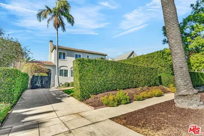 1925 Mediterranean Masterpiece in Windsor Village HPOZ. Experience timeless elegance in this 1925 Mediterranean treasure, ideally situated on a quiet street just one block from Harold Henry Park in the esteemed Windsor Village Historic Preservation Overlay Zone. A designated contributor, this 3,800-square-foot residence blends historic character with modern luxury, featuring exquisite lighting fixtures and recessed lighting throughout. The open kitchen boasts Bosch and LG appliances, double sinks, and custom cabinetry, flowing seamlessly into a bright family room with French doors that open to the lush backyard. Elegant Carrara marble baths and abundant natural light accentuate the home's refined style. The primary suite includes a remarkable walk-in closet, a sitting area, and dual French doors leading to a spacious Saltillo-tiled balcony. At the same time, original stained-glass windows adorn the staircase. A Batchelder fireplace anchors the living room, complemented by custom drapes and window treatments. The laundry room offers oversized LG washer and dryer machines. Outdoors, the private yard is designed for entertaining, with covered patios, a BBQ area, and a sparkling pool and spa. The wonderful guest house (converted garage ADU) provides additional space for guests or creative use. Gated off-street parking and mature privacy hedging complete the property. With four bedrooms, a den/office, and four baths on an 8,500+ square-foot lot, this exceptional home offers the perfect balance of elegance, comfort, and contemporary living in one of Los Angeles's most beloved historic neighborhoods. The home also includes an earthquake-bolted foundation and dual HVAC system for comfort and security. Don't miss this amazing opportunity.