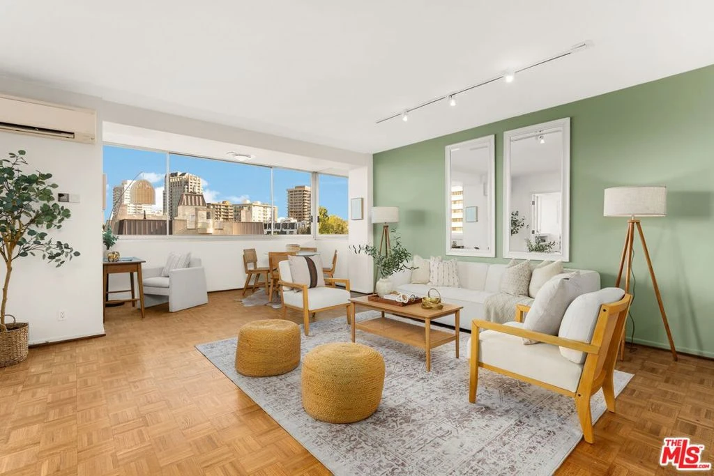 Welcome to Park Westwood Towers, an iconic high-rise in the heart of Westwood Village, located just one block from UCLA. Designed by acclaimed architect Victor Gruen, this New York-style building pairs timeless design with modern-day comfort. This light-filled 1-bedroom, 1-bath condo features wide city views through wall-to-wall windows with a smart, flexible layout. The brand-new kitchen is both stylish and functional, with crisp white cabinetry, stone countertops, new stainless steel appliances (including a wine fridge), and a chic tile backsplash. The kitchen flows into an open-concept living and dining area, ideal for connected everyday living. French doors open from the bedroom to the living space, bringing in even more natural light and allowing for versatile use. The newly remodeled bathroom includes a large walk-in shower with floor-to-ceiling tile and designer finishes. Refinished parquet wood floors, split-zone heating and air, high ceilings, and fresh paint create a clean, inviting feel, while abundant closet space, including a walk-in, offers excellent storage. Park Westwood Towers offers 24-hour doorman, valet guest parking, an elegant lobby, onsite management, and a heated pool and spa. HOA dues of $1,101/month cover almost everything -- water, sewer, trash, cable, internet, free community laundry and one gated parking space. With UCLA, restaurants, shopping, Trader Joe's, the W Hotel, and more just outside your door, this turnkey condo offers style, convenience, and comfort in one of Westwood Village's most desirable addresses.