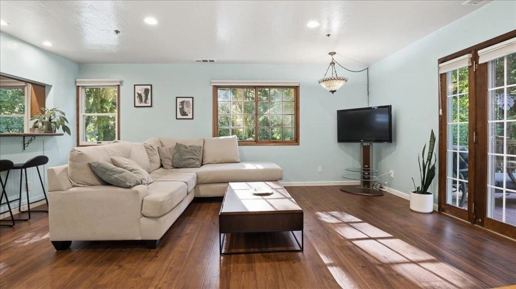 Welcome to your paradise on a serene private road with tranquil lake views across the street! Just 5 minutes from downtown Los Gatos, this enchanting 4-bedroom, 2-bath retreat offers spacious and comfortable living surrounded by towering redwoods and lush forest. Located across from beautiful Howell Reservoir, the setting feels like a year-round vacation escape. The flexible layout features two bedrooms upstairs and two downstairs, ideal for guests or multi-generational living. The kitchen is equipped with gorgeous countertops, electric range, refrigerator, dishwasher, exhaust fan, and 220V outlet. Tile and wood laminate flooring blend style and durability throughout, while natural light fills the home, including a skylit stall shower. Enjoy modern comforts like central A/C, forced air heating, indoor laundry with washer/dryer, a spacious deck for relaxing or entertaining, and a backup generator for peace of mind. Covered two-car carport provides convenience. Tucked beside water company parcels for added privacy, this cozy and endearing home is a true hidden gem. Whether youre seeking a peaceful full-time residence, weekend getaway, or a sought-after Airbnb retreat, this property offers the perfect blend of nature, charm, and opportunity.