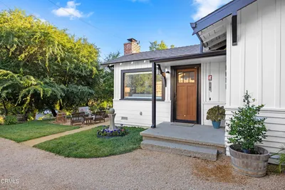 Fully remodeled wine country retreat with SYV-meets-Provence inspired charm, beautifully appointed on an oversized 0.52+/-acre lot with stunning landscaping and thoughtfully designed outdoor living spaces. Lush lawns, mature pepper trees, olives, citrus, lavender & grasses, a chicken coop, and raised garden beds create a private garden setting, while the dedicated outdoor dining area with a pizza oven and oak pit Santa Maria-style BBQ is perfect for entertaining and enjoying the al fresco wine country lifestyle.A gated stone path entry leads to the front door and sets the tone for this simple, clean and elegant space. Wood floors throughout the main living areas of the home create a seamless flow and expansive feel in the cottage, and the well-designed cook's kitchen features ample storage, stainless steel appliances, a cozy dining area, and bar seating. Carrera marble accents tie the home together and are featured in the kitchen, laundry, and bathrooms. The 1,244 SqFt home features three bedrooms, 1.5 bathrooms, it is intimate & timeless, and the perfect Santa Ynez Valley full-time residence or weekend escape.The detached garage structure currently features a gym and could be reimagined as office space, a studio, or a pool house. In addition, the current owners have fully approved and permitted, ready-to-build drawings from bespoke architectural firm PLACE, with interior design plans from Santa Barbara-based MN Studio Interiors, to create a family compound with pool cabana. Just three blocks from downtown Los Olivos, with vineyard walks on one side and world class wine and food on the other, in the heart of wine country. Come enjoy what feels like a European holiday, just two hours north of Los Angeles.