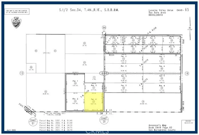 8.87 Acres (APN: 0449-651-32) GPS: 34.385824, -116.868323 This 8.87 acre property sits on Cheshire Rd in Lucerne Valley CA. The property is zoned Lucerne Valley-Rural Living. This zoning allows for residential homes. Electricity is approx 1320 ft NE at the neighboring property (7550 Minneola Rd Lucerne Valley, CA 92356). Owner Financing Available! Not all Sellers are familiar with offering financing to a Buyer and collecting monthly payments. The owners, having owned many properties, are offering financing with 50% down, a loan of $12,000 at 10% interest for 5 years, with monthly payments of $254.96 per month. Adjacent properties also for sale. Access is limited to WALKING, as some roads have not yet been tractored in yet. Use the GPS: 34.385824, -116.868323 coordinates to view property and access.