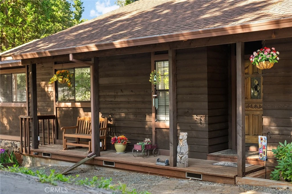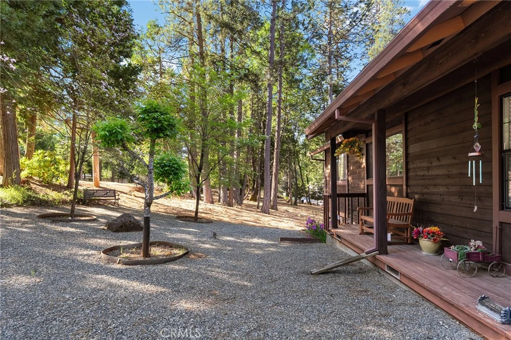 Amazing Custom Built home on 0.75 ACRES!! Fantastic views of the beautiful evergreen forest and canyon. Pride in ownership shows throughout with the home with a 2 YEAR OLD ROOF and a NEW HVAC System. This custom home was built with 2x6 WALLS! Location is within WALKING distance of the Paradise Pines Property Owners Association. Upon entering this 3 bedroom 2 bathroom home, through the custom stained-glass front door, you are greeted by a spacious custom ATRIUM that overlooks the living room. The living room features a custom 8x4ft window showcasing stunning Magalia views, a free standing wood burning fireplace set on tile with a custom rock backsplash, and a built-in bookcase accentuated by directional lighting. Sliding glass doors open to an over 500 sq ft entertaining deck, plenty of room for all your family and friends and perfect for enjoying the scenery. The kitchen is highlighted by a stained-glass light, plantation shutters over the sink and granite countertops. It includes all black appliances, featuring a glass cooktop and NEW double ovens. Adjacent to the kitchen is the laundry room, complete with a full-sized washer and dryer, overhead cabinets, and a pantry for extra storage. The dining area features a 6ft breakfast bar that looks into the kitchen and an etched glass window overlooking the entryway. Down the hallway, you will find a guest bathroom, two bedrooms, a linen closet, and the primary bedroom. Both bathrooms include cultured marble showers and matching countertops, creating a cohesive and polished look. The garage offers a bonus storage room, epoxy flooring, and a dedicated workbench area for projects. Additional upgrades include 2 wood sheds, one of which has electricity, and every room has remote controlled ceiling fans. Being set in the PPOA, this home offers scenic walking trails, pool and spa, lounge, billiards room, outdoor activity areas, social spaces, versatile sports courts, and a variety of engaging classes ranging from sewing to ceramics—providing a vibrant sense of community and lifestyle.