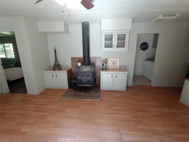 Discover the charm of mountain living in this 2-bedroom 2-bath home. This home features vaulted ceilings, a wood-burning stove, an oversized laundry room, and a built-in hutch for storage. The kitchen features a well-designed layout that opens to the main areas of the house. Unwind in the master suite, which includes a shower-in-tub design and plenty of storage space. Outside there is a beautiful wooden deck and a fully fenced-in yard. On this great sized lot, there are raised garden beds, waterspouts throughout the property, great pathways, and easy to maintain landscaping. There is a storage shed out back and an outbuilding in the front when you enter the driveway, the possibilities for use of that building are endless. This home is being sold as is and with a little TLC this will be the perfect place to call home! This property has the potential to shine bright. Take advantage of the affordable price and make this house a home that you’ll be proud of. With the cozy wood-burning stove, spacious backyard, and plenty of natural light, you’ll never want to leave.