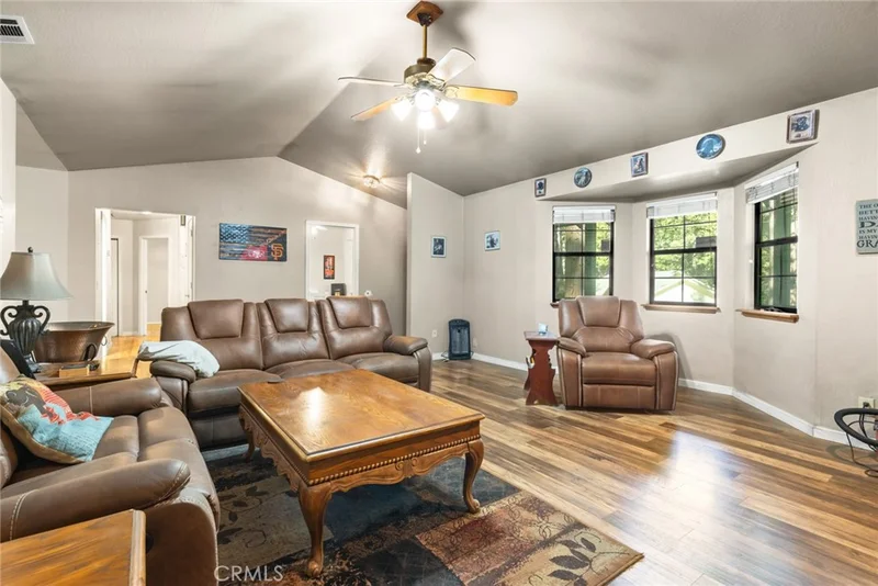 Nestled among the beautiful pines of Magalia sits this charming 3-bedroom, 2-bathroom home that offers everything you need for comfortable mountain living. Step inside and be greeted by vaulted ceilings, stunning laminate flooring, and large windows that fill the space with natural light while framing serene outdoor views. The spacious living room, complete with a cozy wood stove, is perfect for those chilly winter nights in. The open-concept kitchen is designed for both functionality and charm. It features elegant white cabinetry, granite countertops, modern appliances, an electric range, dishwasher, and a quaint breakfast bar that’s perfect for quick meals or morning coffee. When it’s time to unwind, the primary suite provides a peaceful retreat with private access to the backyard, generous space to relax, and an en suite bathroom boasting dual sinks and a large walk-in shower. Additional highlights include a separate indoor laundry room, ceiling fans throughout, a dining area for family gatherings, and an attached 2-car garage. Step outside to the backyard. An ideal place to take in the fresh pine air, host outdoor gatherings, or simply enjoy the sounds of nature. Picture yourself grilling dinner on the back deck, savoring the crisp mountain air, and listening to laughter drift from inside the home. This property offers the perfect blend of comfort, charm, and tranquility. Don’t let this opportunity pass you by!