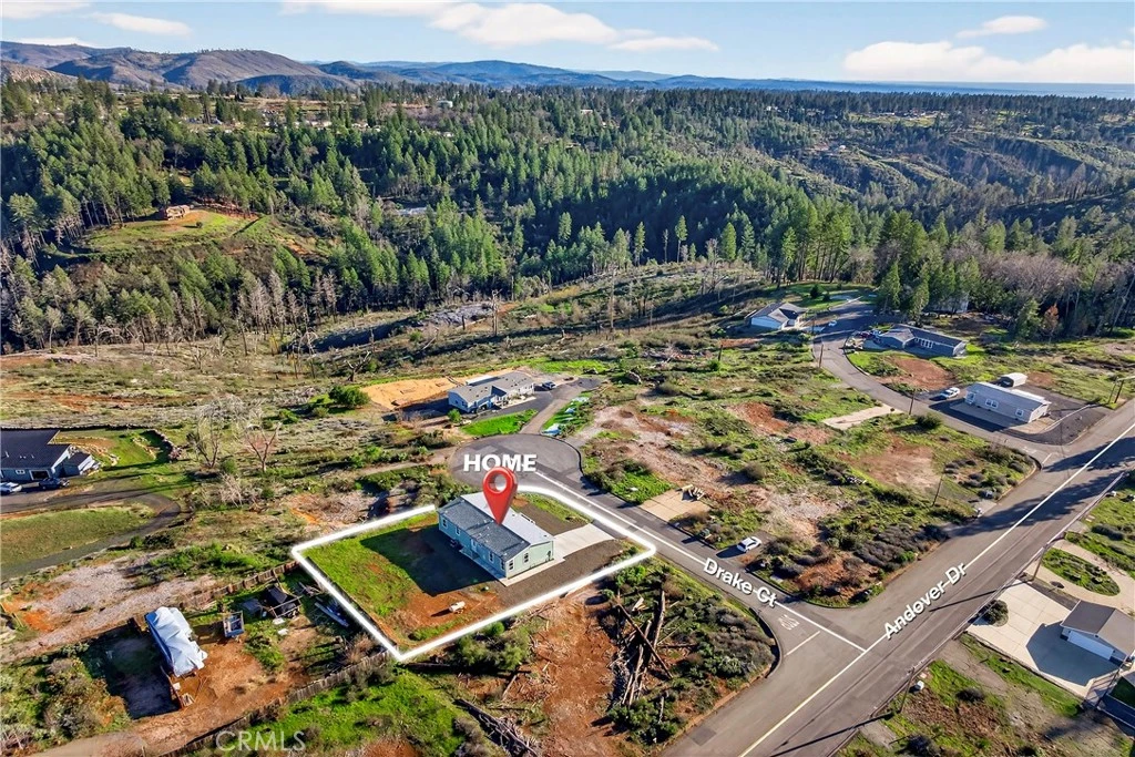 Tucked away on a peaceful cul-de-sac, this beautiful BRAND NEW home brought to you by a local builder, offers a welcoming entry and a thoughtfully designed layout that blends comfort, functionality, and inviting living spaces. The welcoming front porch measures approximately 91 square feet, providing ample space for seating and a perfect spot to relax while enjoying the quiet surroundings. As you step inside, you’re greeted by natural light pouring through the transom windows, filling the living room with a bright and airy ambiance. The kitchen is well-appointed for both everyday living and entertaining and is open to the living room, creating a seamless flow for gatherings and daily life. It features solid-surface countertops, soft-close cabinetry, pull-out wood drawers, Whirlpool appliances, a tile backsplash, and an outlet with type C and USB charging on the island. A pantry with a rain-glass door adds both style and practicality, while the dining area enhances the home’s open and inviting feel. Sliding glass doors in the living room lead to the balcony, which spans approximately 69 inches by 165 inches (about 79 square feet), offering a lovely outdoor extension of the living space—ideal for morning coffee, evening relaxation, or taking in scenic views of Sawmill Peak and the surrounding Sierra Nevada foothills. The laundry room is designed with both gas and electric hookups for the washer and dryer, offering flexibility to suit your needs, and includes direct access to the backyard—ideal for convenience and outdoor living. The home offers three spacious bedrooms, and hall bathroom that includes extra cabinet storage. The primary bedroom features a generous walk-in closet and an ensuite bathroom complete with a step-in shower with sliding glass doors and corner seating, a private toilet area, and dual LED-lighted vanity mirrors. Additional highlights include recessed LED lighting throughout, a concrete driveway and walkway, and two exterior GFCI outlets for added convenience when enjoying the outdoor spaces. Located within walking distance to the Magalia Community Center, South Pines Disc Golf, and Izzy’s Bar & Grill. This home also offers the benefit of being part of the Paradise Pines Property Owners Association (PPOA). PPOA amenities include scenic walking trails, outdoor activity areas, social spaces, versatile sport courts, and a variety of engaging classes ranging from sewing to ceramics—creating a wonderful sense of community and lifestyle.