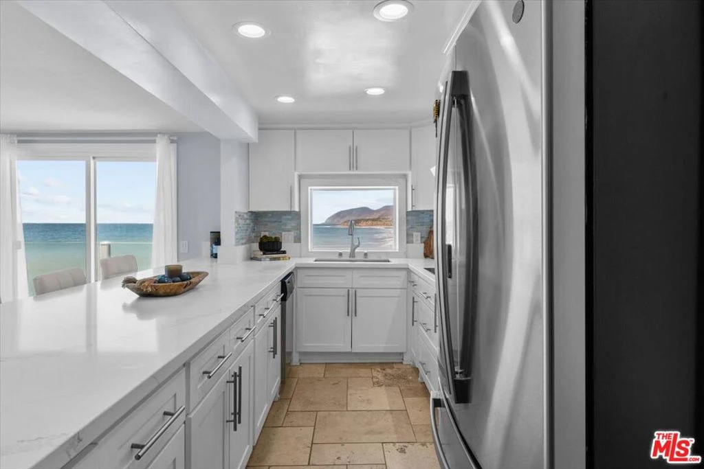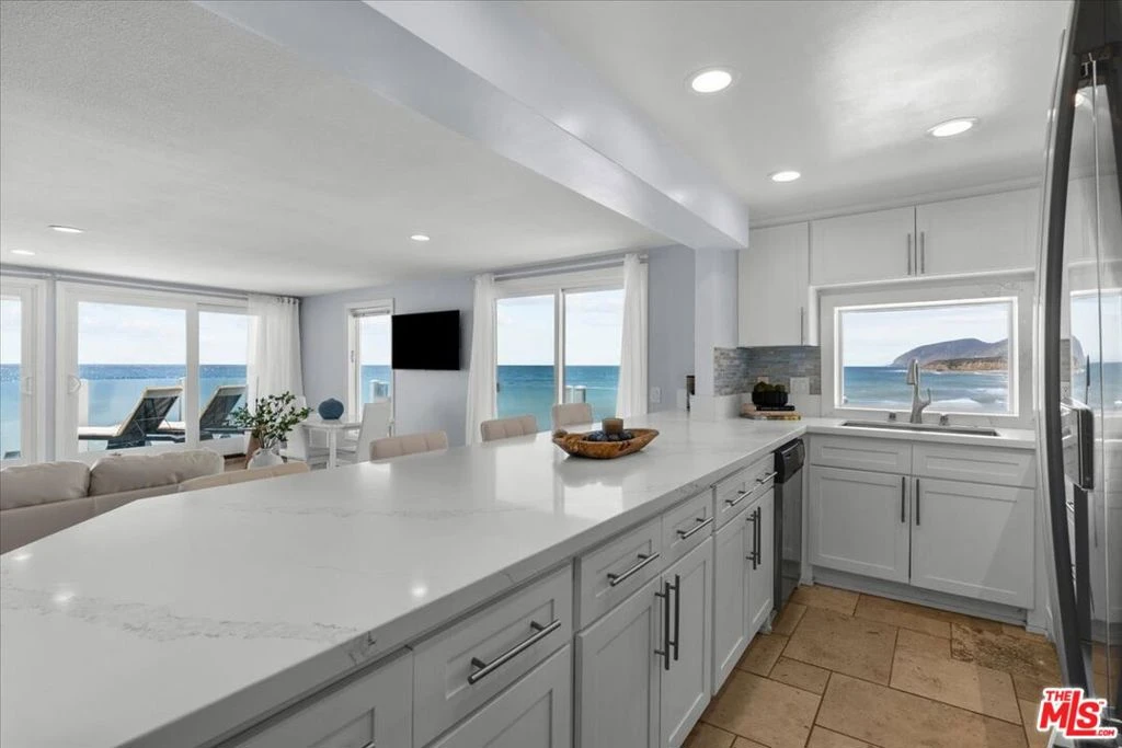 Welcome to the gem of Malibu Shores! This breathtaking oceanfront, corner unit in Malibu offers spacious four bedroomS, three bathrooms oasis and showcases the essence of coastal living. Enjoy breathtaking views from sunrise to sunset from every single room, expanding from the Channel Islands to Catalina. The open-concept living and dining areas seamlessly connect to a wraparound deck, ideal for entertaining or relaxing. The home features an updated kitchen, bathrooms, new flooring from the stairs to the second floor and AN ideal floor plan! With its south-facing orientation, the unit is bathed in natural light throughout the day and stunning sunsets in the evening. On the first floor, there is a convenient bedroom/office and full bathroom for guests. A practical sand room is located off the deck where you can store your surfboard, wet suits and everything else used to enjoy the beach. On the second floor, you'll find the primary suite that boasts a spacious balcony with stunning panoramic views, walk-in closet and a beautifully appointed bathroom. In addition, you there are two more bedrooms with a LOVELY balcony in-between where you can savor the ocean breeze. In the hallway will be a spacious bathroom with washer, dryer & storage! Steps from the front door, enjoy easy access to popular surf beaches at County Line and Buena Vista Beach. The gated community also offer a half basketball court and full pickle ball court If you have been looking for a relaxing getaway to call home, this is the one!