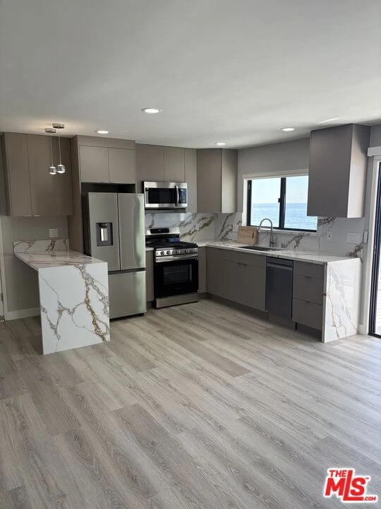 Situated on Malibu Road is this newly renovated beachfront 2-bedroom, 1-bath unit in a small 3-unit building. Stunning panoramic ocean and coastline views and an oversized oceanfront deck, perfect for enjoying the twinkling city light views in the evening. Private stacked washer and dryer in the unit. 1 car enclosed garage. Centrally located in Malibu, just a short stroll to the Malibu Colony Shopping Center. Unfurnished for one year or more. No VRBO/Airbnb or short-term rentals.