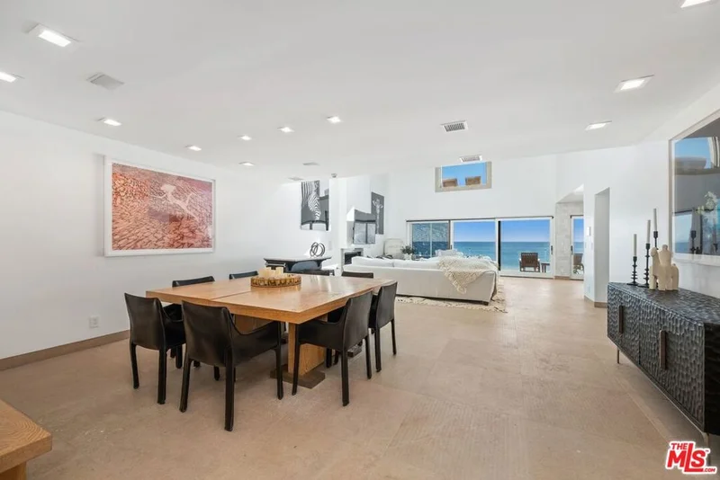 Fully furnished and ready for move-in immediately!! This property spans 50ft on the deepest section of beach on Malibu Rd & has unobstructed panoramic ocean views of Santa Monica Bay, Catalina & Point Dume. The property features a dual gated entry, driveway w/ ample secure parking & courtyard that leads to the custom fossilized front door. The main floor is expansive & features an open floor plan w/ formal dining area, living area w/ double-height ceiling & newly remodeled kitchen w/ a massive marble island, custom cabinetry & brand-new stainless-steel appliances by Viking and Wolf. An abundance of natural light fills the space w/ a large skylight & floor-to-ceiling sliding glass doors that open to a large balcony w/ glass railings that span the width of the house. The primary suite encompasses the entire top floor w/ his & her walk-in closets, custom blue marble bathroom w/ dual vanity & water closets, skylight & soaking tub w/ ocean views. The primary bedroom features a fireplace & sliding glass doors that lead out to the balcony & west facing sunset views. The bottom floor features three additional en-suite bedrooms, one of which is oceanfront w/ direct balcony access & the other has triple bunkbeds. Lastly, there is an oceanfront den, laundry room & private beach access. Centrally located off PCH in the highly desirable Malibu Rd community w/ easy access to world class dining at Nobu or Lucky's, designer shops in the Country Mart & countless miles of hiking at Bluff's Park & Puerco Canyon.