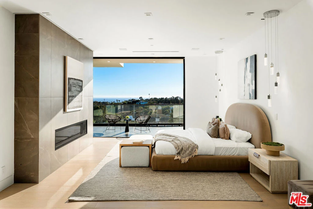 Perched above the coastline with panoramic Pacific Ocean views, this newly constructed organic modern estate sits on over two acres of landscaped grounds including a vineyard near Malibu's Point Dume. At the end of a private cul-de-sac, the estate features almost 9,000 square feet of interior and exterior entertainment space with views of the ocean and Santa Monica Mountains. A gated entrance leads to a circular motor court and elegant architectural approach that immediately establishes the home's scale, privacy, and design pedigree. Inside, soaring 11 foot ceilings and walls of glass in the living and dining spaces are flooded with natural light and dramatic views from nearly every major living space. Expansive open-concept living areas flow effortlessly to more than 3,000 square feet of wraparound ocean-view decks, creating a seamless connection between indoor and outdoor living. The home's material palette reflects thoughtful craftsmanship and a warm modern organic aesthetic where no expense was spared in finishes and materials. Fleetwood windows and doors create clean architectural lines, while custom white oak built-ins, handmade zellige tiles, lime-washed walls, and striking stone surfaces including Taj Mahal quartzite and leathered granite add texture and refinement throughout. The minimalist modern kitchen serves as the centerpiece of the main living area, anchored by a dramatic 12-foot leathered-stone island and equipped with top-of-the-line Miele appliances, PITT gas range built into stone, a generous walk-in pantry, and ample prep space. A wine cellar and dramatic stone clad wine bar make for intimate or large scale entertaining, The residence offers five bedrooms and five bathrooms all ensuite with a highly functional layout, including two bedrooms on the main level ideal for guests, office use, or multigenerational living. Upstairs, the primary suite is designed as a private sanctuary featuring dual closets, a sitting room, and a spa-inspired bathroom clad in Taj Mahal quartzite. Two additional bedrooms and a spacious family room complete the upper level, which is easily accessed via a private elevator connecting both floors. Expansive deck spaces wrap around all bedrooms upstairs and lead to an entertainment deck with an outdoor bar and lounge, capturing both ocean mountain views. Luxury amenities include an indoor-outdoor gym, a a state-of-the-art home theater, a glamorous powder room, and a bonus storage space. The beautiful outdoor spaces feel like a private resort. A sparkling pool and spa overlook the surrounding landscape, complemented by a custom barbecue area, built-in fire pit, and approximately 4,000-square-foot grassy pad with a golf practice area. The vineyard adds a uniquely picturesque element rarely found in Malibu properties; a unique combination of ocean view and Tuscan inspired vistas. Designed with convenience and security in mind, the estate includes a four-car garage, extensive parking for more than ten + vehicles with private side-yard parking suitable for an Airstream, boat, or recreational vehicles. Security includes door bird gates, lutron lights, security cameras, and AV system. This secluded new-construction estate represents a rare opportunity to own a Malibu ocean-view compound with a vineyard, privacy, and architectural integrity all just minutes from Point Dume, Malibu beaches, dining, and shopping.
